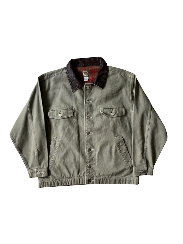 タフなツイル生地のボディに襟のレザーでの切り替え ワークタイプの作りでコーデの親和性が高いベーシックな作りが秀逸 裏地のチェックやタグのデザインといった見えない部分がすごく素敵 . 肩幅 55 身幅 60 着丈 65 袖丈 55 . 《注意事項》 ◆取扱商品はすべて古着となります。特性上、小さなシミやほつれ等がある場合がございます。その特性をご理解頂ける方のみご購入ください。 ◆掲載商品の画像に関しまして、ご覧になっているブラウザやパソコン等の環境により、実際のカラーと異なる場合がございます。あらかじめご了承ください。 ◆ご注文後の内容変更、キャンセルは一切お受けできません。掲載内容(サイズ・画像のカラー)と実際の商品との若干のズレに関しましても返品対応しかねます。 ◆注文内容と異なる商品をお届けした場合、当店の過失の場合には返品対応致します。その際ご返送前にご連絡くださいませ。尚、返品対応期間は商品到着後、4日以内とさせて頂きます。それ以降になりますとご対応出来かねますので、あらかじめご了承ください。 ◆別々でご注文頂いた場合、同梱することはできません。 ◆配送はゆうパックもしくはレターパックになります。 ◆入金確認後7日以内の配送を予定しております。 ◆配送後、期間以内にお受け取りされない場合、商品は当社まで返送されます。当社返送後の再配達をご希望の場合には、再配達の往復費用がお客様のご負担となりますのでご注意ください。