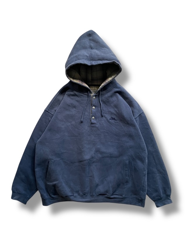 襟がスナップボタンでのヘンリーネック仕様になったノーフィアのロゴパーカー 褪せ感のあるネイビーボディに同色での刺繍ロゴ クセのないシルエットでガンガン使える優れものです . サイズ XL 肩幅 68㎝ 身幅 70㎝ 着丈 66.5㎝ 袖丈 55㎝ コンディション 全体的に古着ならではの使用感があります . 《注意事項》 ◆取扱商品はすべて古着となります。特性上、小さなシミやほつれ等がある場合がございます。その特性をご理解頂ける方のみご購入ください。 ◆掲載商品の画像に関しまして、ご覧になっているブラウザやパソコン等の環境により、実際のカラーと異なる場合がございます。あらかじめご了承ください。 ◆ご注文後の内容変更、キャンセルは一切お受けできません。掲載内容(サイズ・画像のカラー)と実際の商品との若干のズレに関しましても返品対応しかねます。 ◆注文内容と異なる商品をお届けした場合、当店の過失の場合には返品対応致します。その際ご返送前にご連絡くださいませ。尚、返品対応期間は商品到着後、4日以内とさせて頂きます。それ以降になりますとご対応出来かねますので、あらかじめご了承ください。 ◆別々でご注文頂いた場合、同梱することはできません。 ◆配送はゆうパックもしくはレターパックになります。 ◆入金確認後7日以内の配送を予定しております。 ◆配送後、期間以内にお受け取りされない場合、商品は当社まで返送されます。当社返送後の再配達をご希望の場合には、再配達の往復費用がお客様のご負担となりますのでご注意ください。