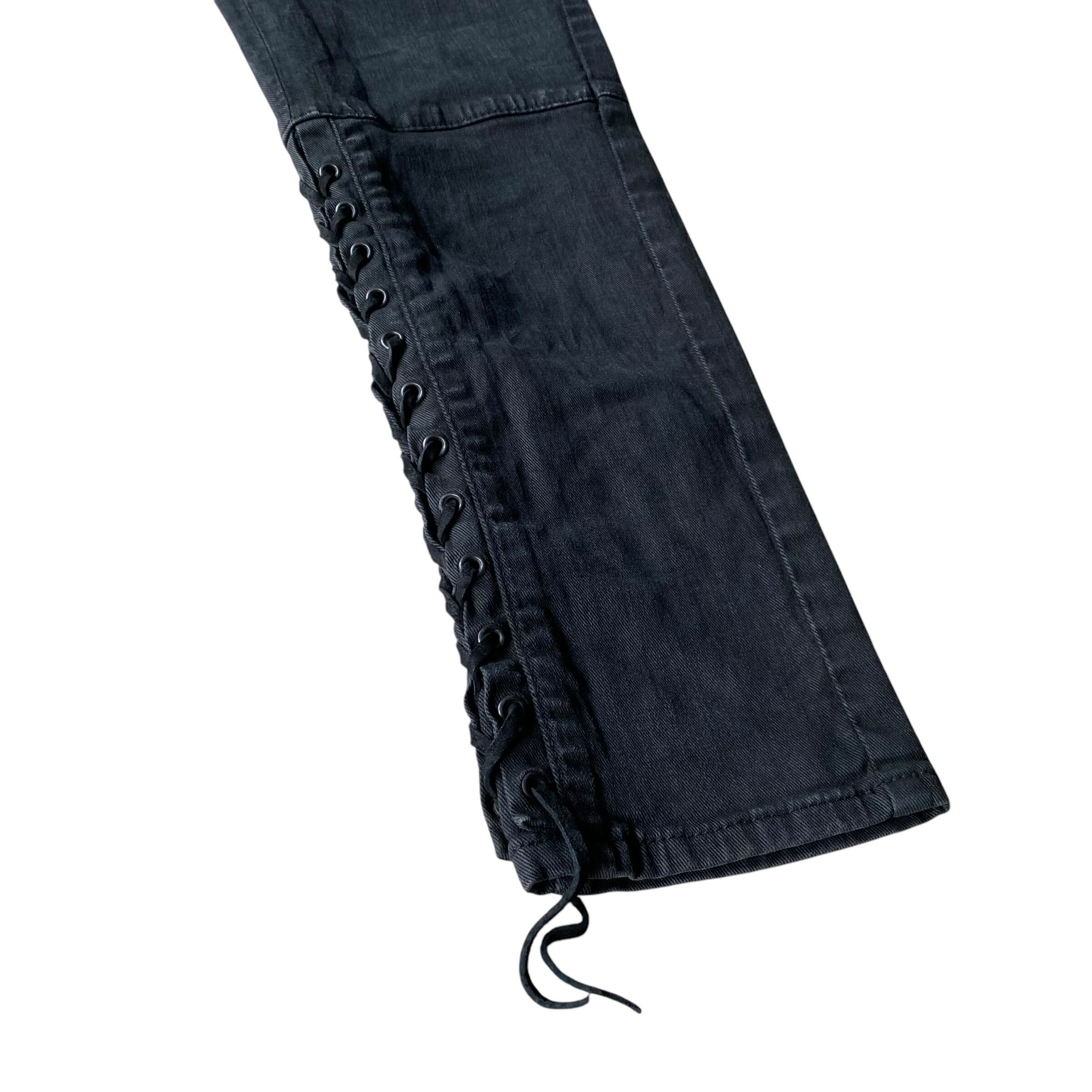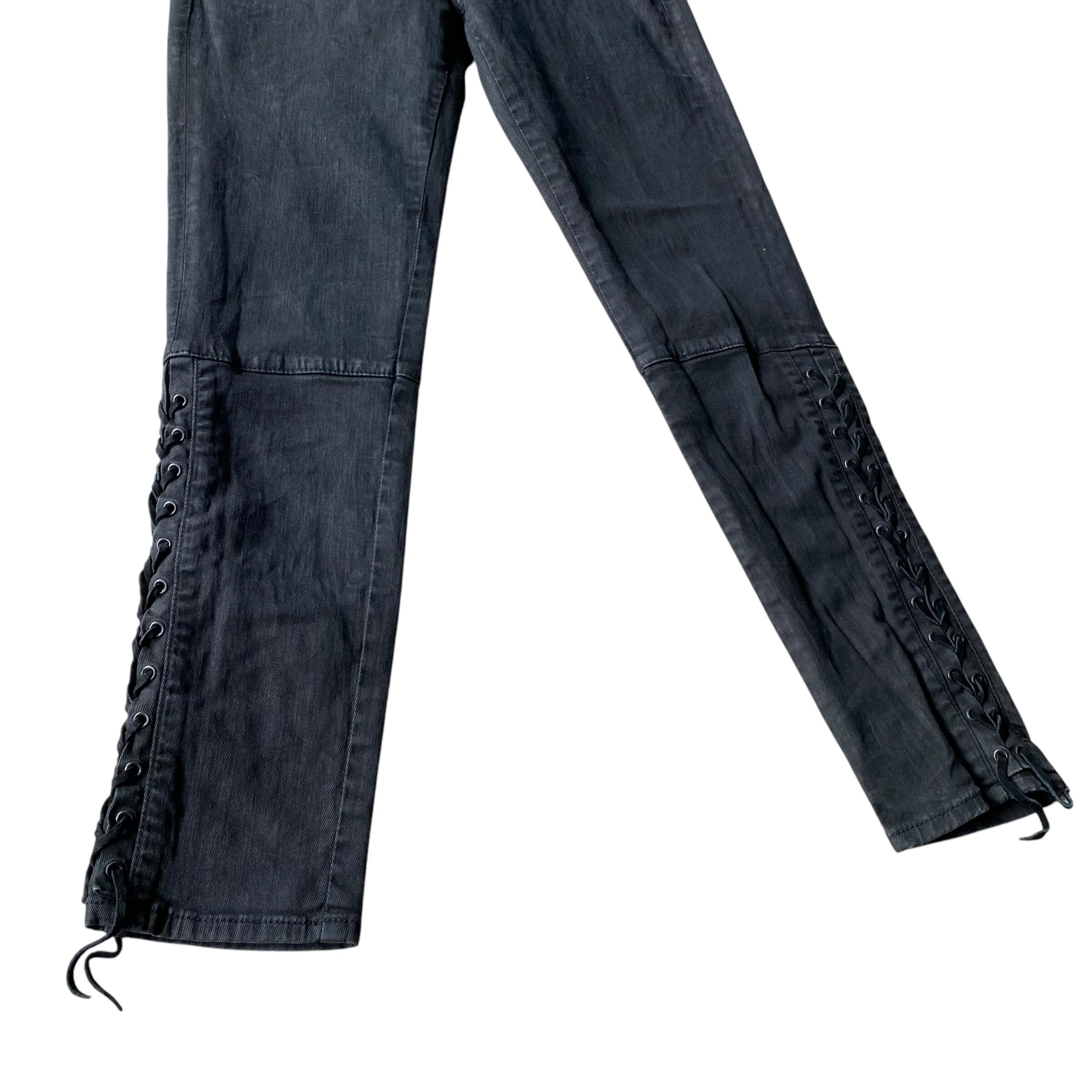 タイトなスキニータイプのシルエットにレースアップ仕様のモードでパンクなスタイル