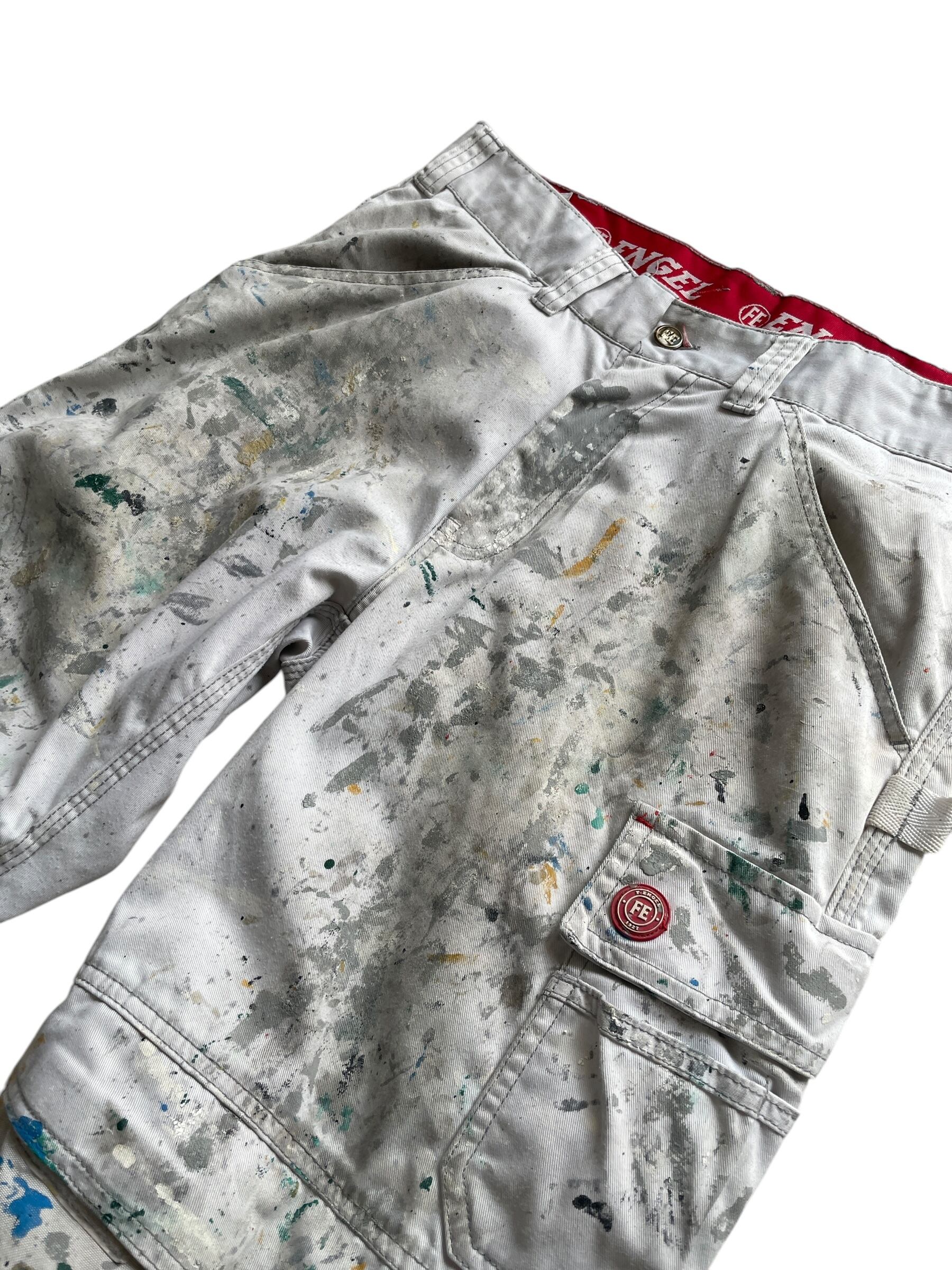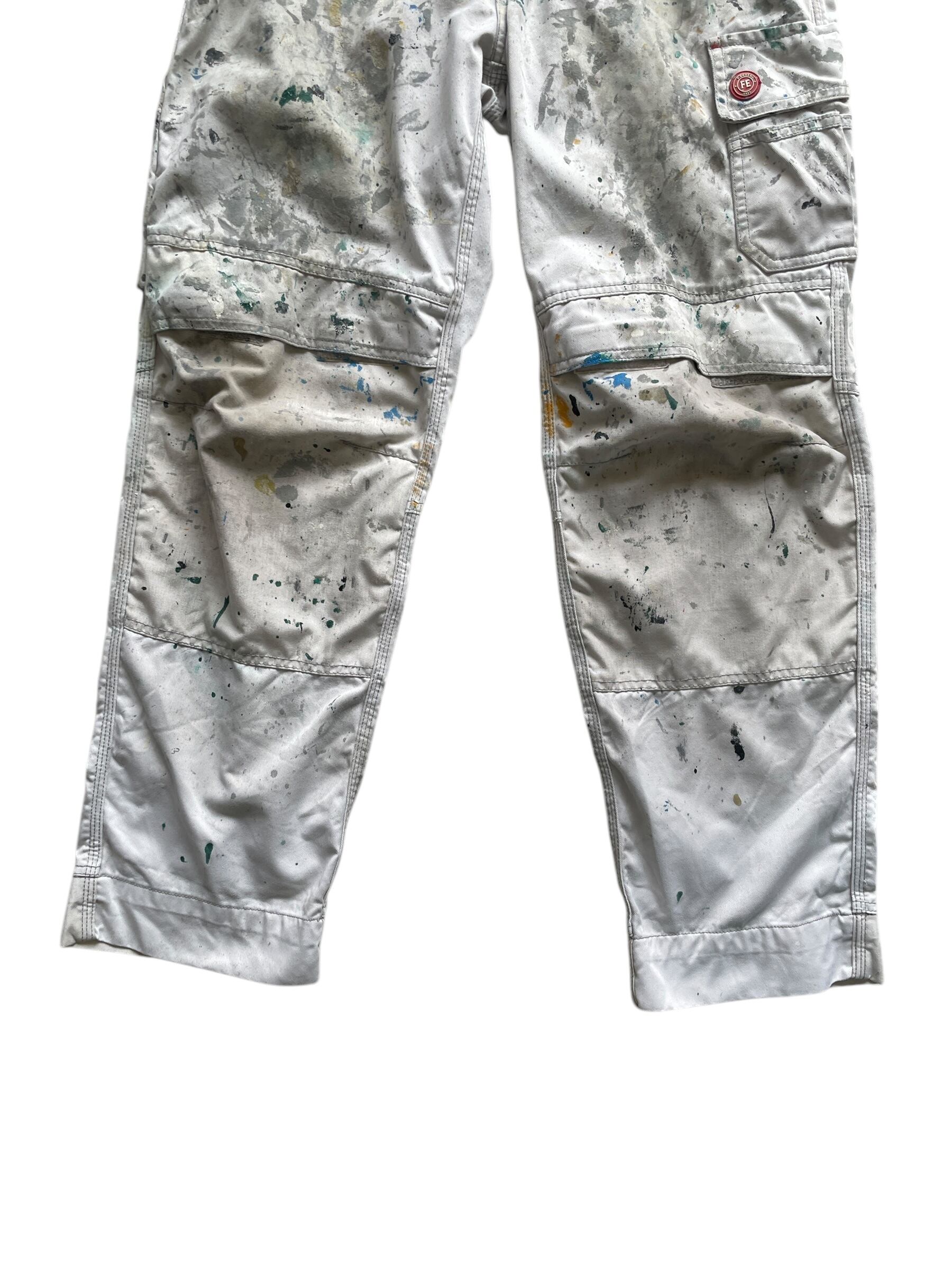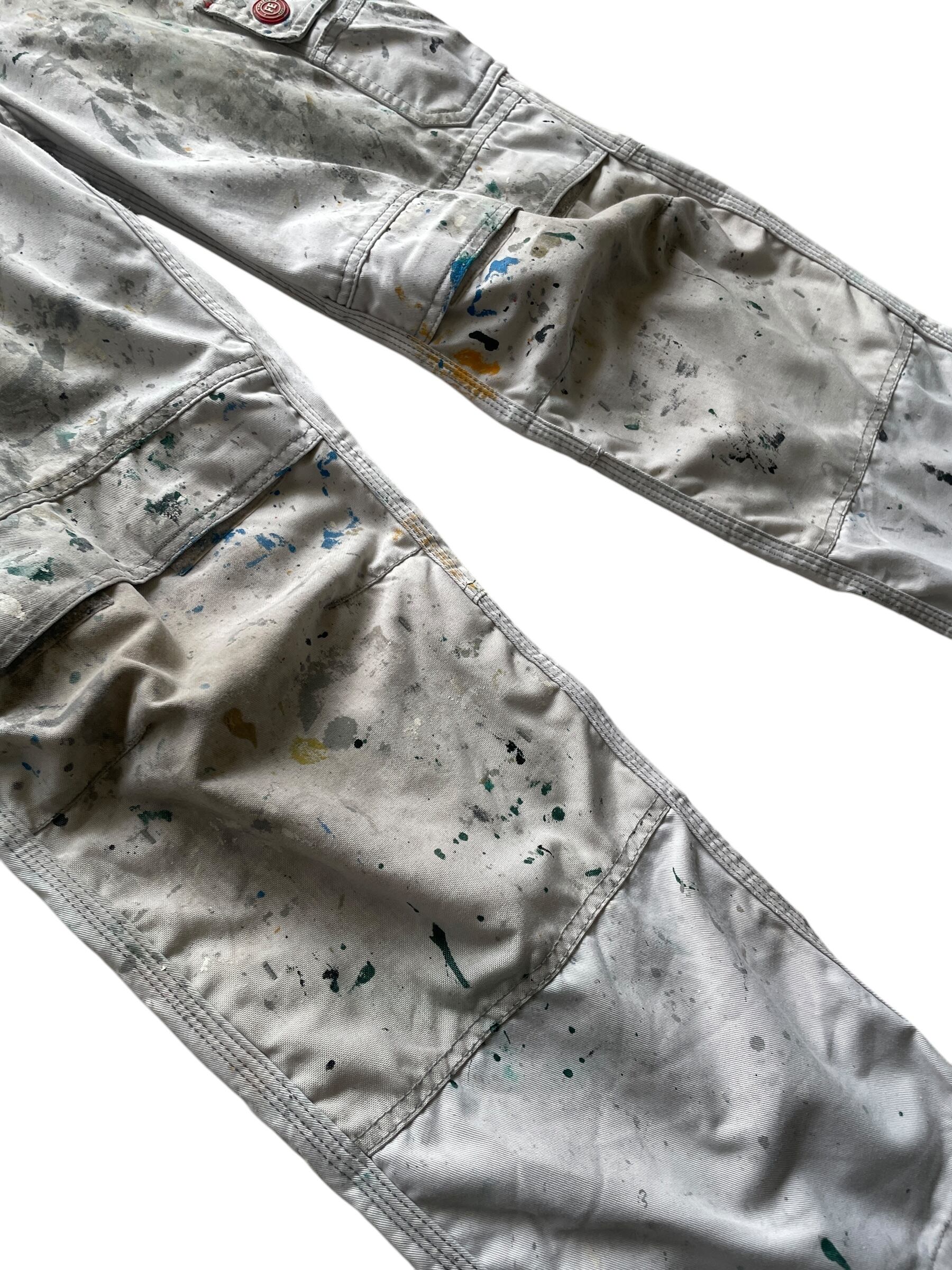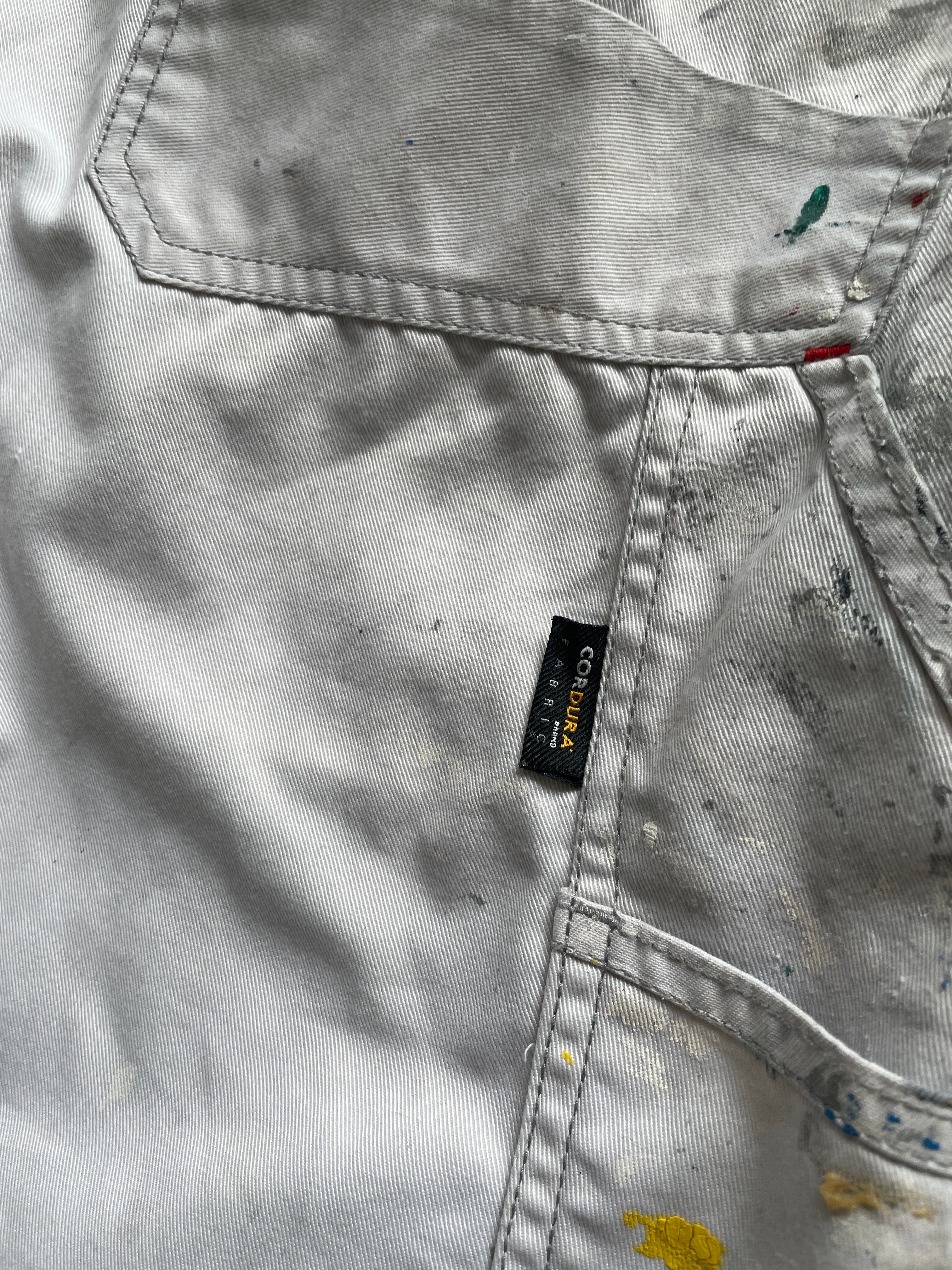 ホワイトのボディにカラフルなペンキの飛び散ったワークパンツ