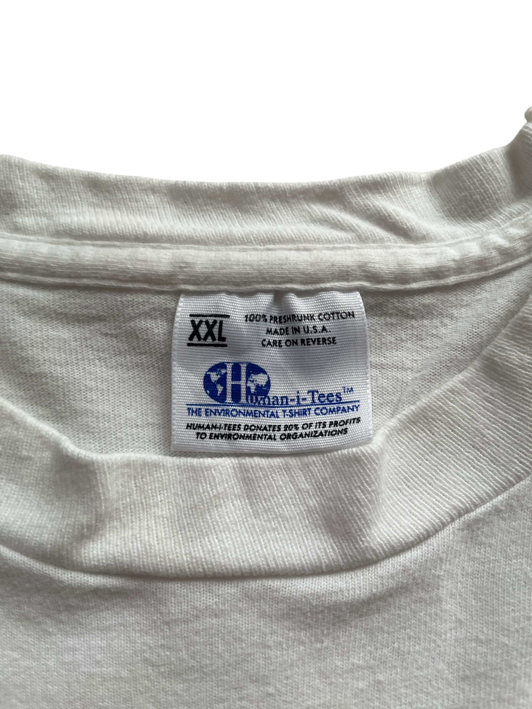 1993年コピーライト入り、環境保護団体への寄付活動でも知られるHuman-i-TeesによるピースメッセージTシャツ。