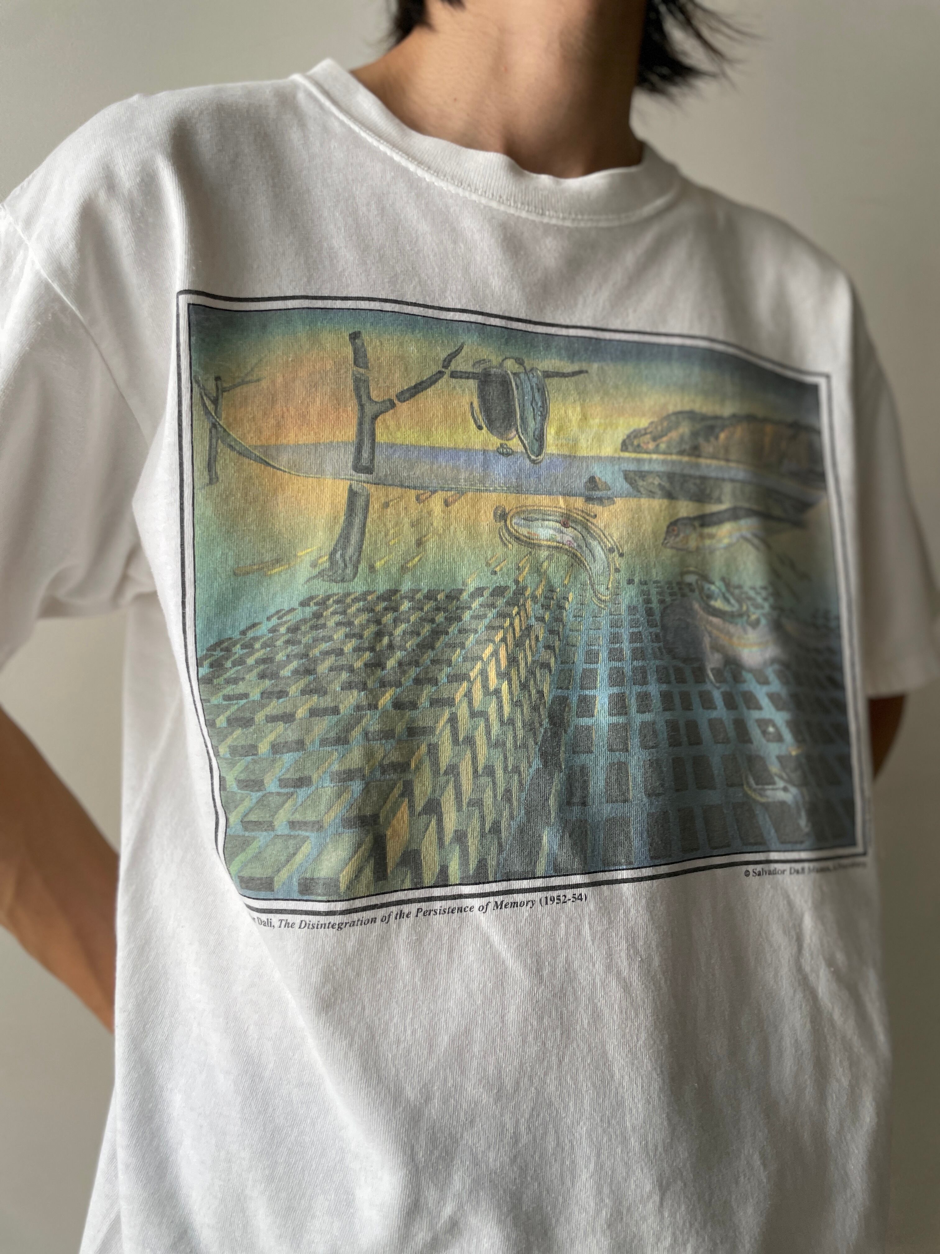 シュルレアリスムの巨匠サルバドール・ダリによる、代表作《記憶の固執(1931)》を自ら再構築した後年の作品、《記憶の固執の崩壊(1952–54)》がフロントにプリントされたアートTシャツ。