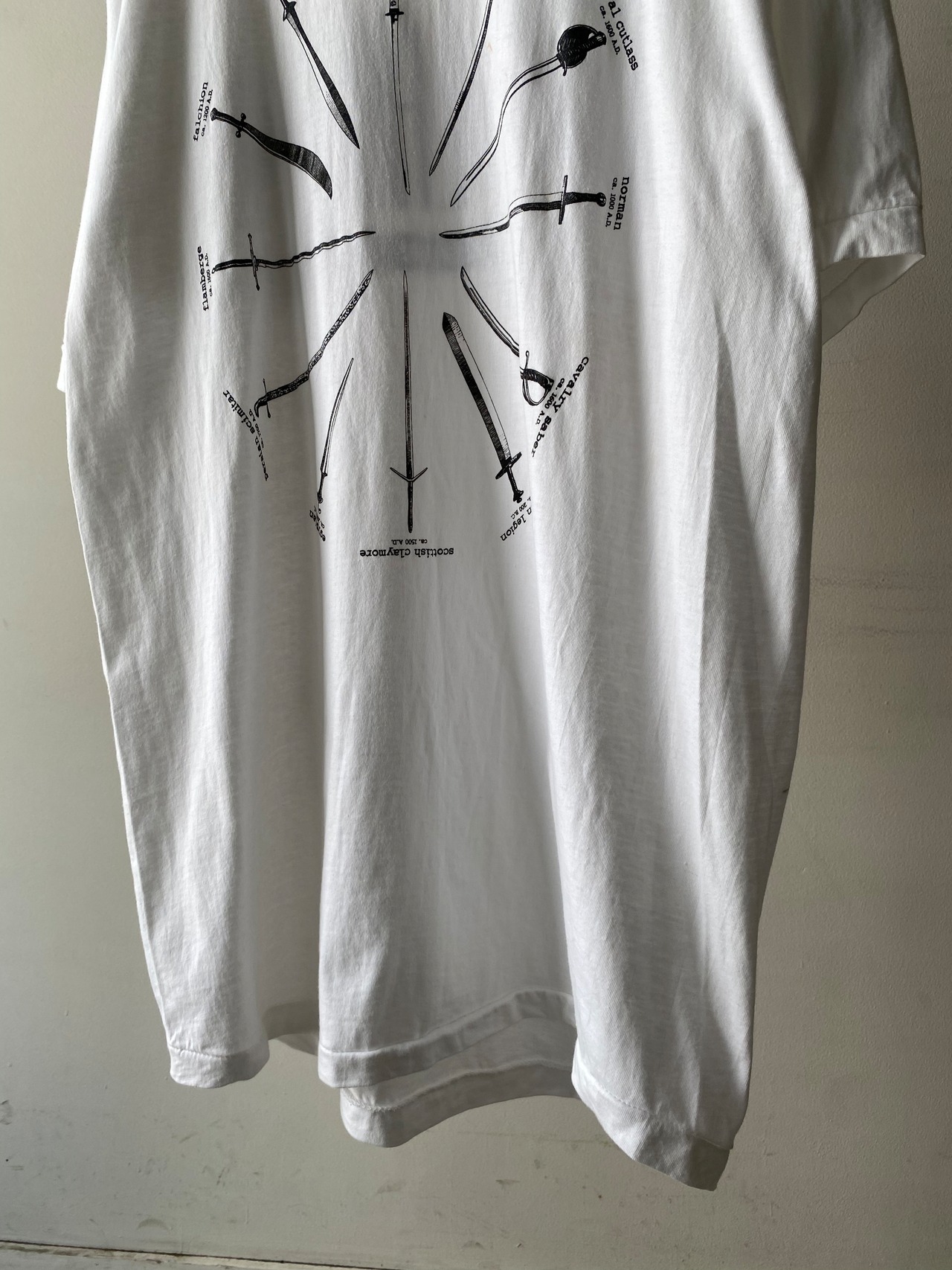 カタナやファルシオンなど様々な年代や国の剣が並べられたスタイリッシュなグラフィック
