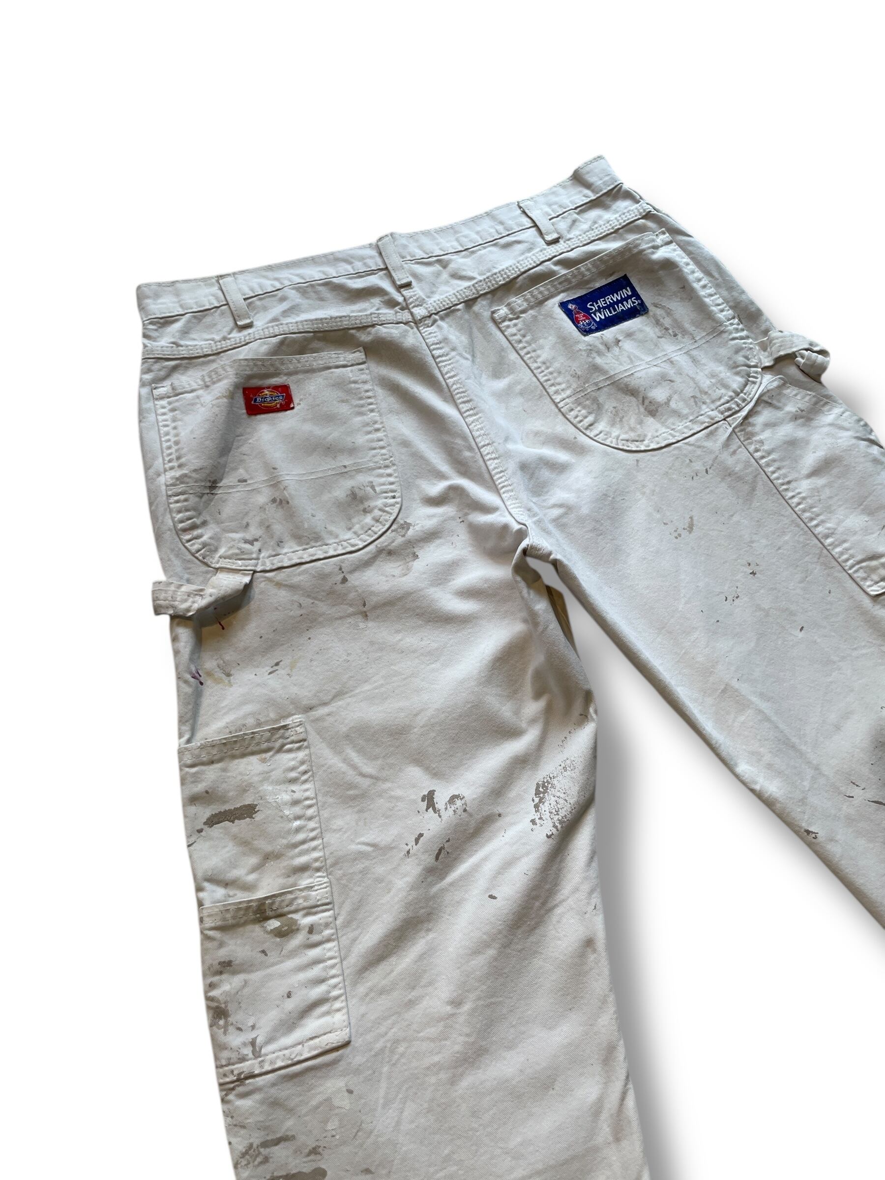 ワークブランド Dickies と塗料メーカー Sherwin Williams の企業ロゴパッチがバックに入る特別仕様のペインターパンツ。