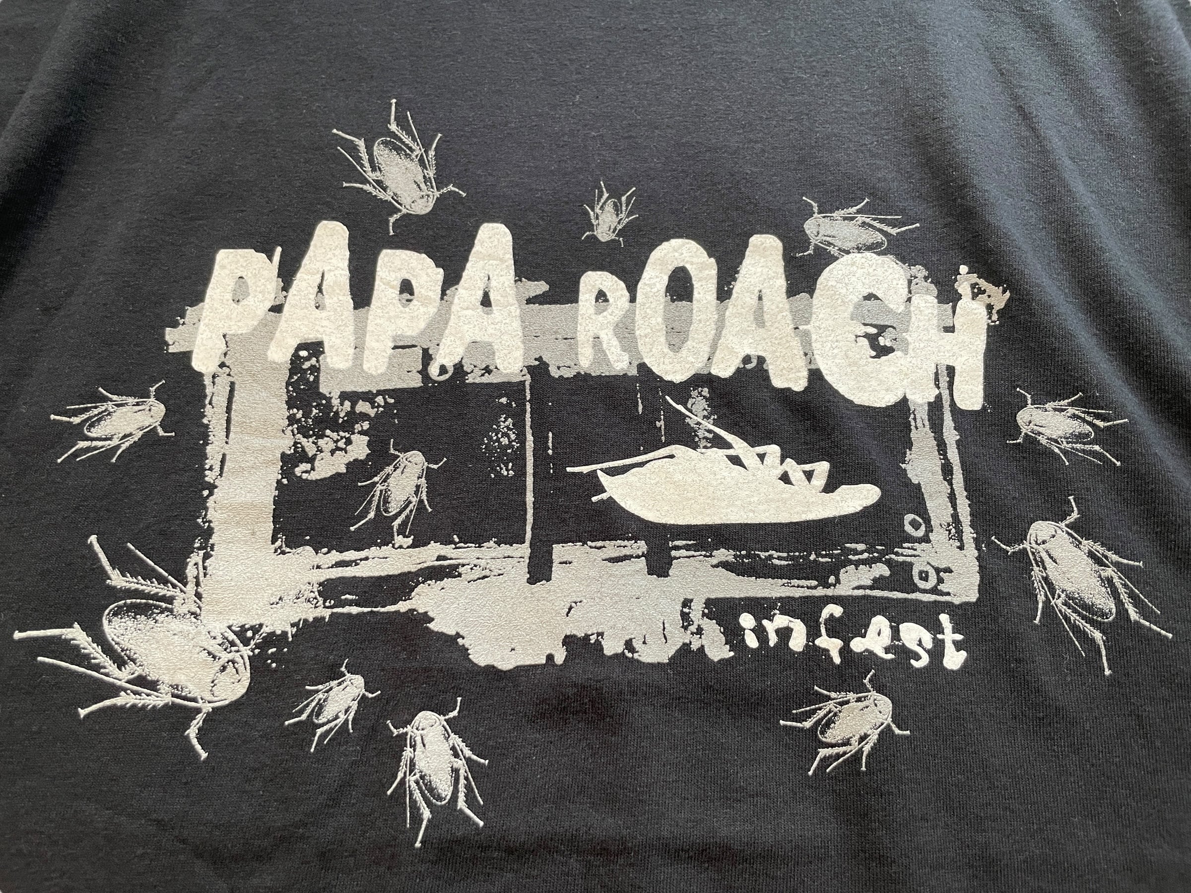 アメリカ・カリフォルニア発のニューメタルバンド Papa Roach の代表作『Infest』(2000年リリース)期のオフィシャルTシャツ。