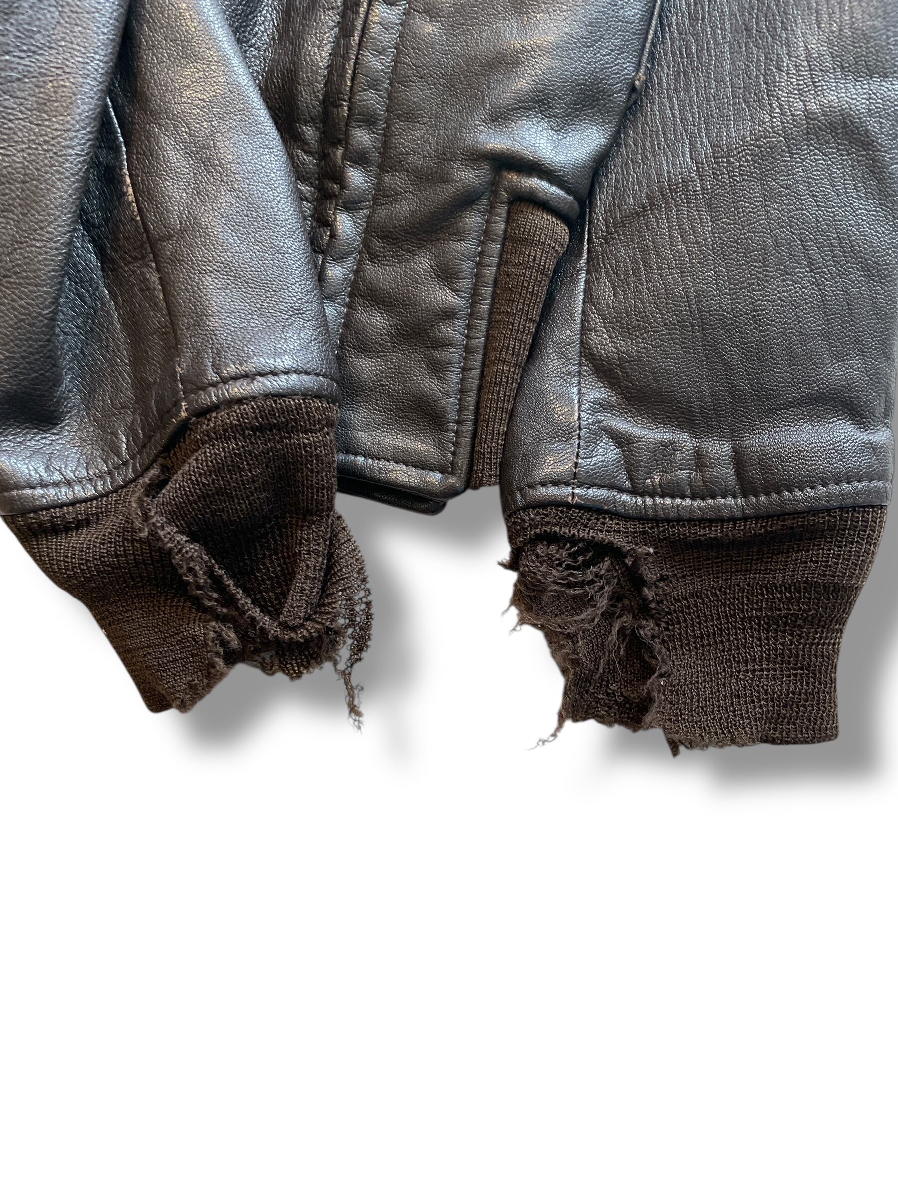 リブ部分にダメージあり。レザーは使用感・スレが見られるが、ヴィンテージならではの雰囲気を楽しめる状態。