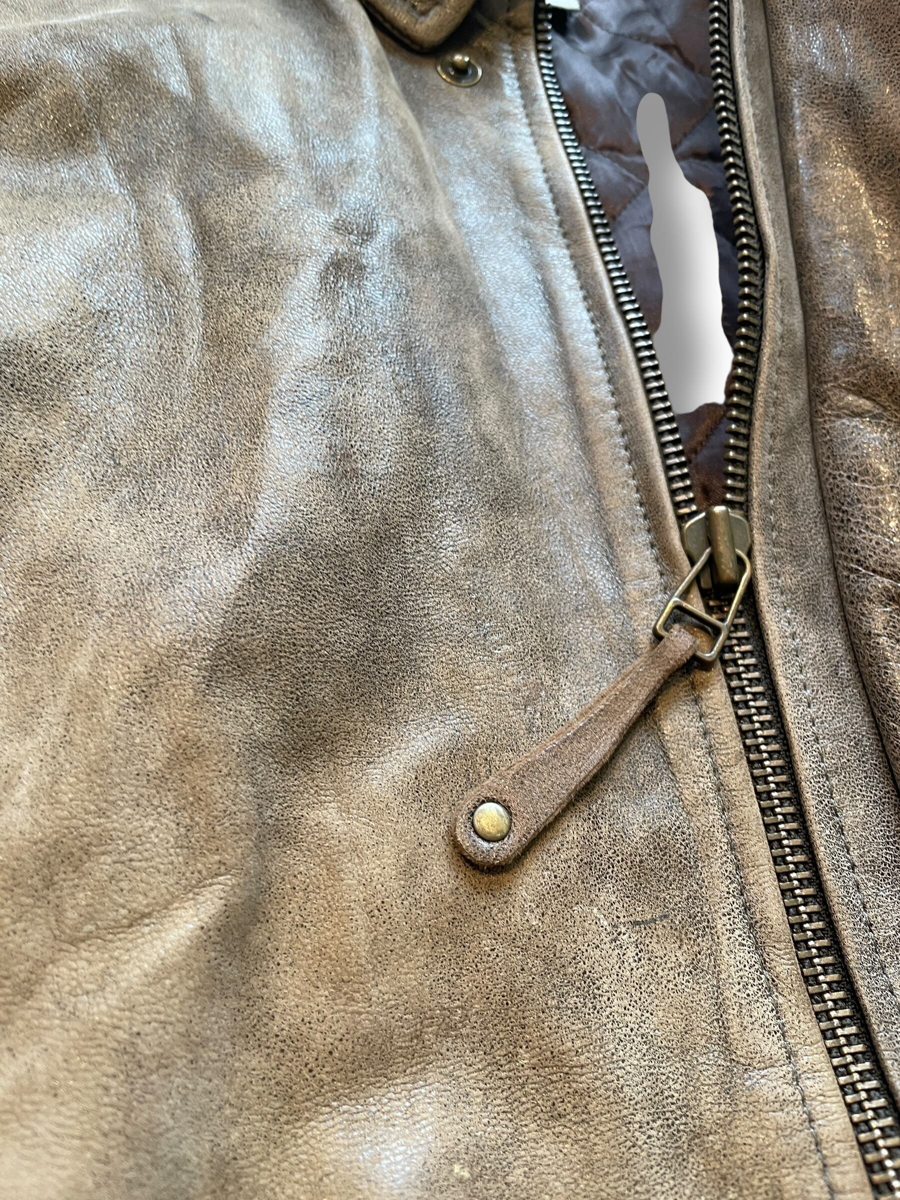 アウトドアブランドらしい実用性と、ヴィンテージレザーならではの経年変化を楽しめる一着です。