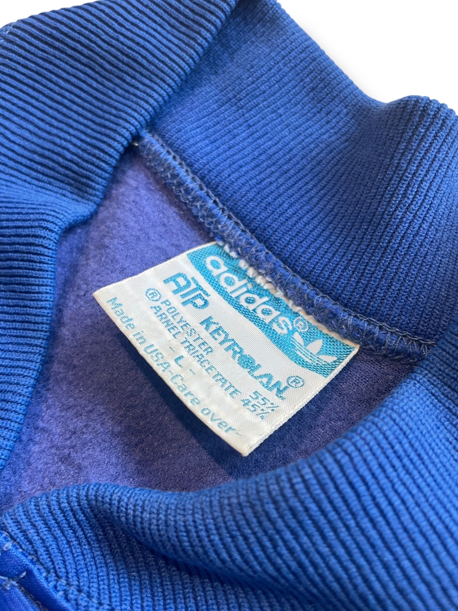 80年代にUSA製で展開されていた希少モデルで、素材にはアディダス独自の Keyrolan(ポリエステル×アセテート混紡) を使用。光沢感としなやかな着心地が特徴です。