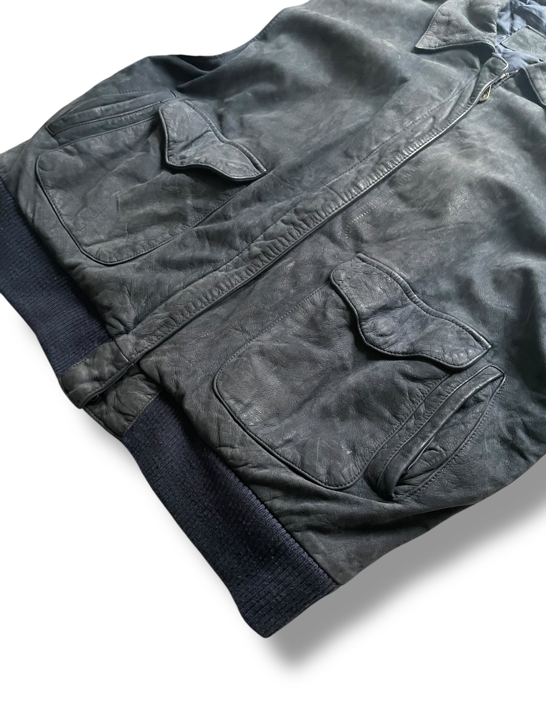フラップポケットやリブ仕様の裾・袖口などA-2のディテールを踏襲しつつ、ヌバックレザー特有のマットな質感と経年変化による奥行きある表情を楽しめるアイテム。