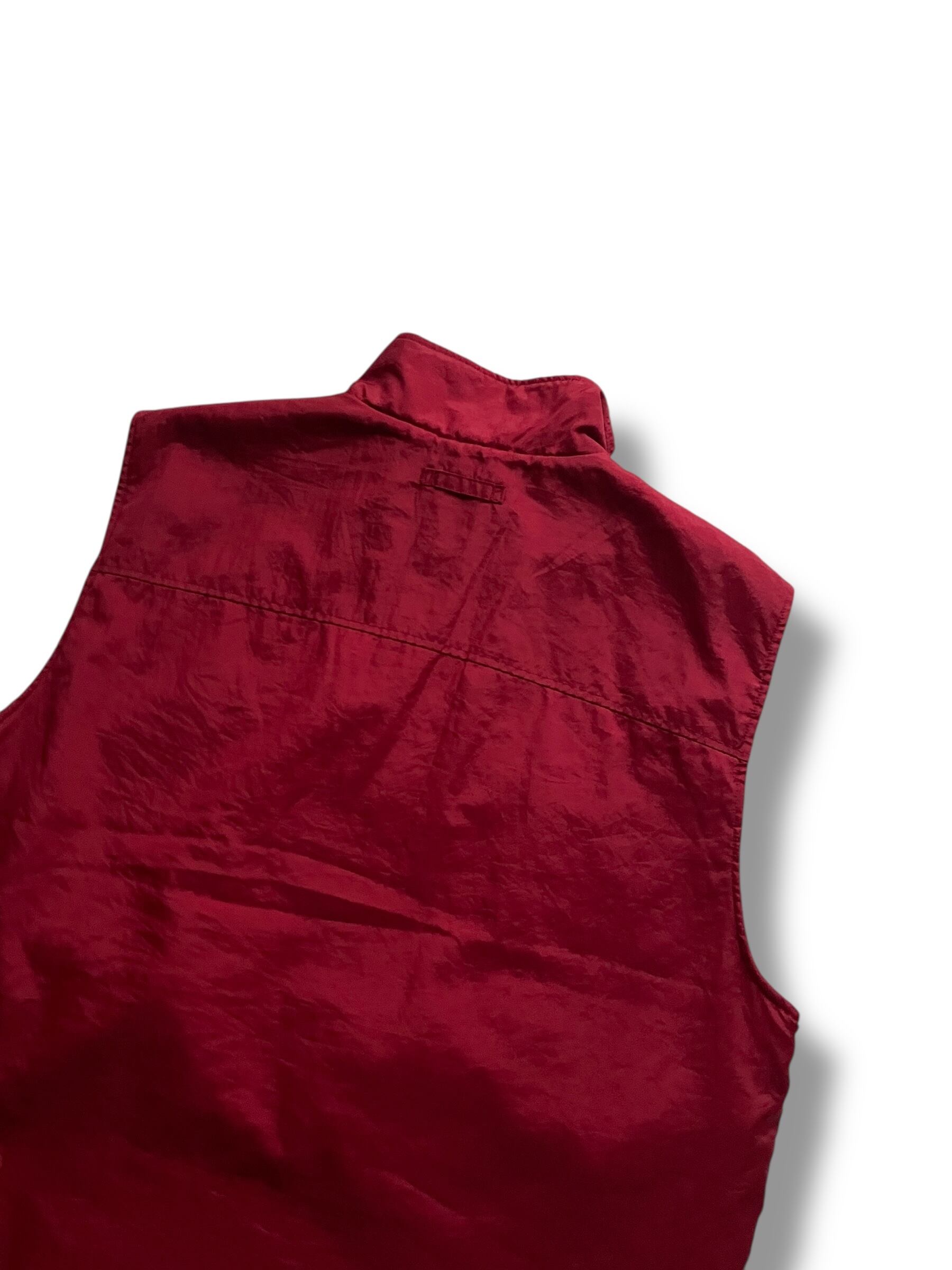 ベスト深みのあるレッドカラーが目を引く、GAPのナイロンベスト。