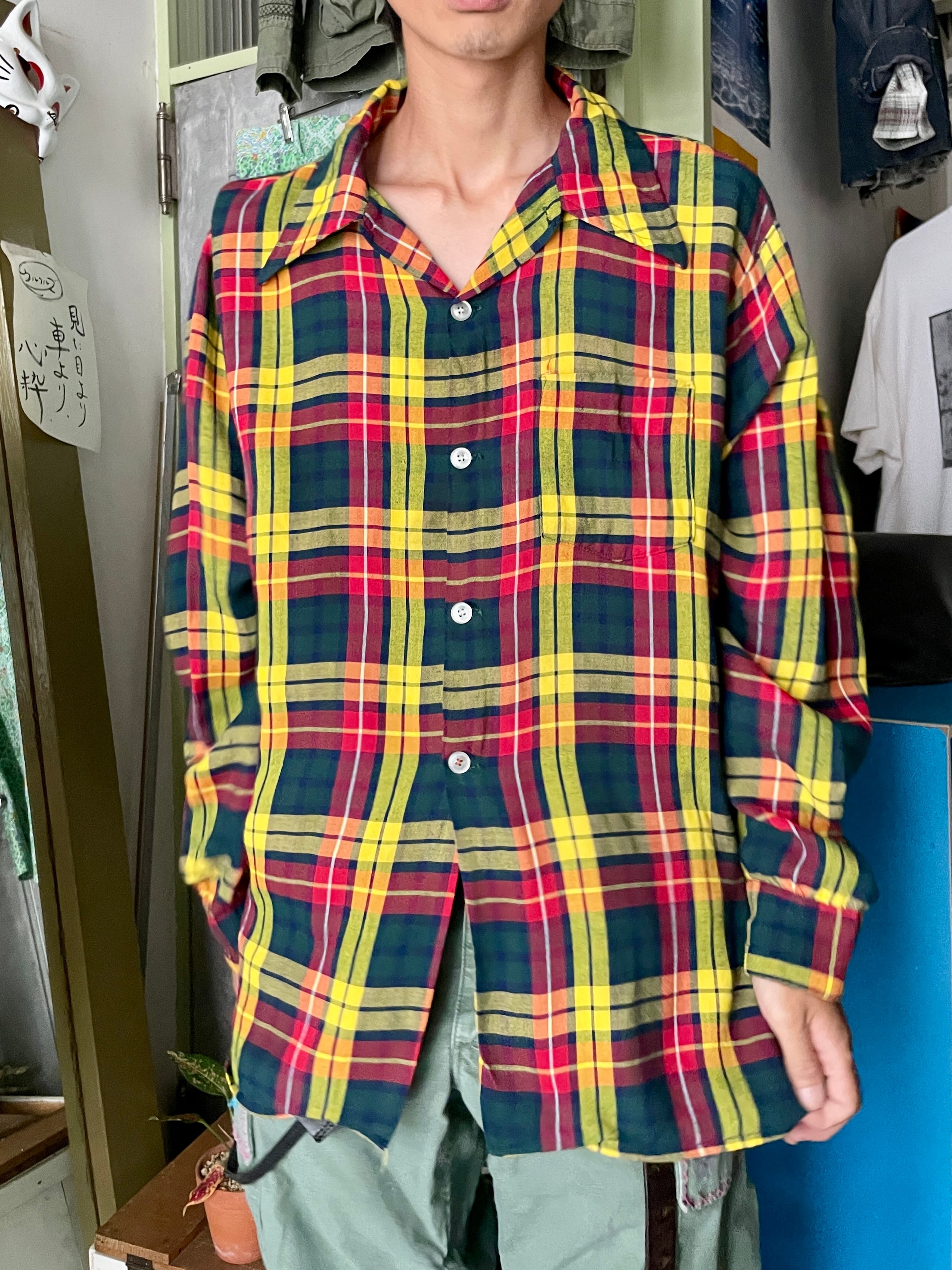 ビビッドなレッド×イエロー×グリーンの配色が目を惹くヴィンテージ「Courtney」のチェックシャツ。