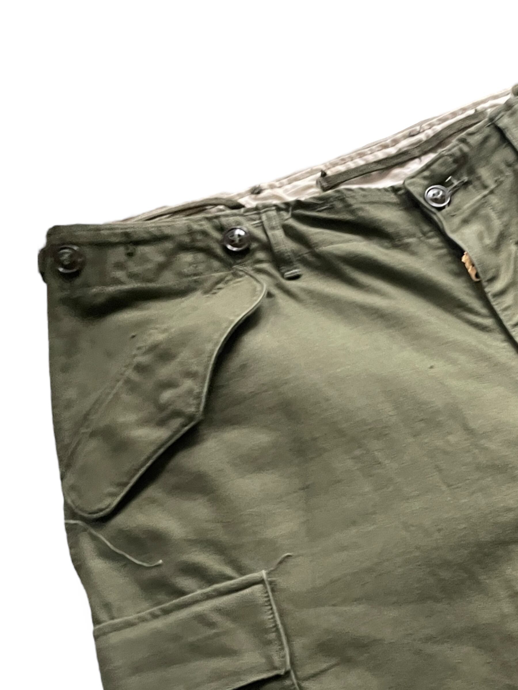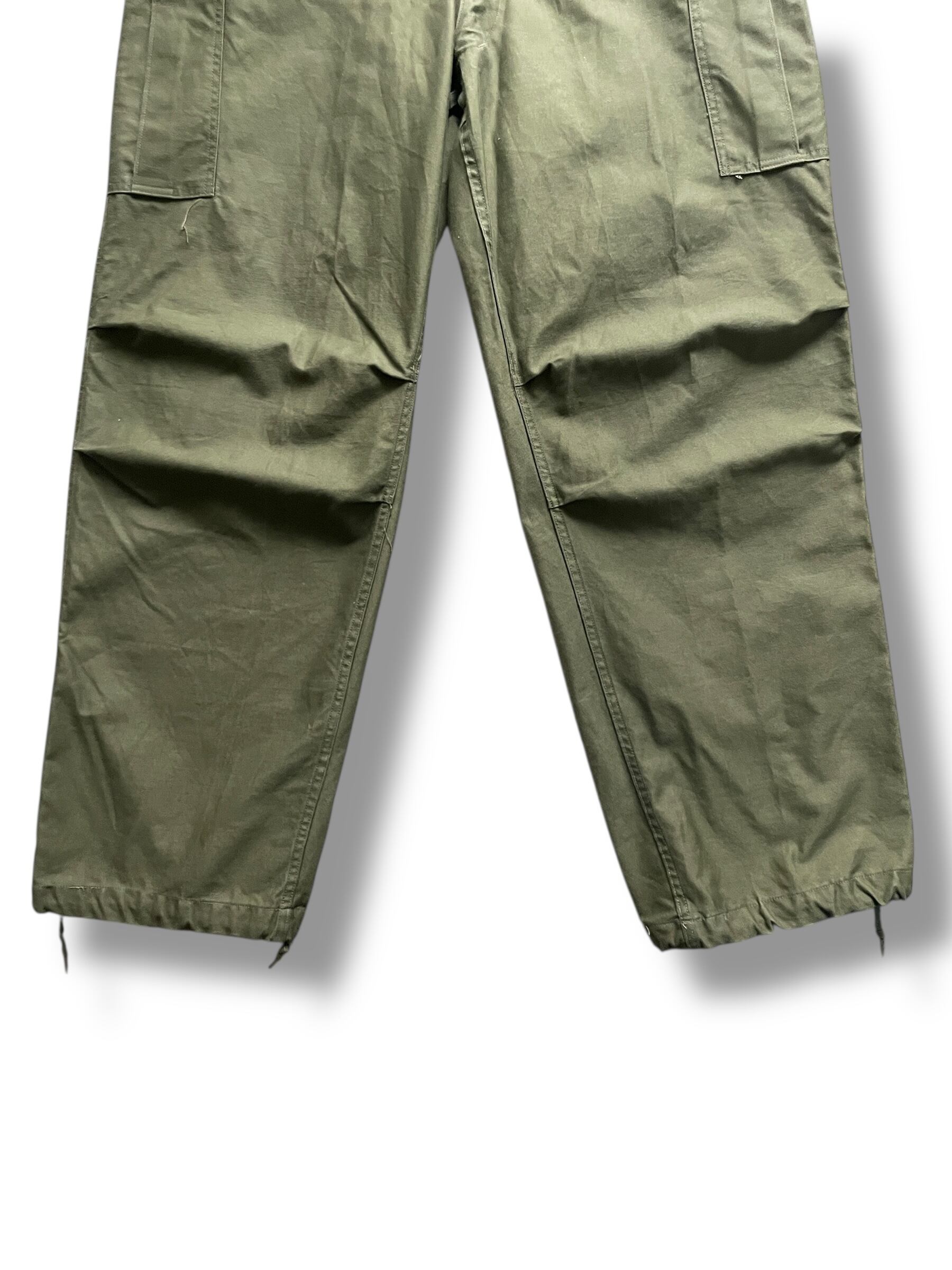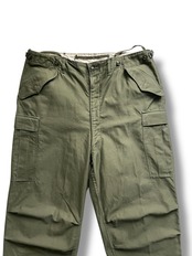 アメリカ軍の名作カーゴパンツ、M-51。1950年代に採用され、朝鮮戦争期からベトナム初期まで幅広く使用された一本です。特徴的なのは、極太のシルエットと無骨なディテール。大容量のカーゴポケット、ウエストアジャスター、裾のドローコードなど、フィールドでの実用性を追求した作り込みが魅力です。