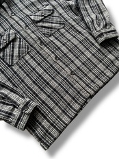とても厚手なフランネル生地かつオーバーサイズなシルエットでライトアウター感覚で着用できる作りになっています