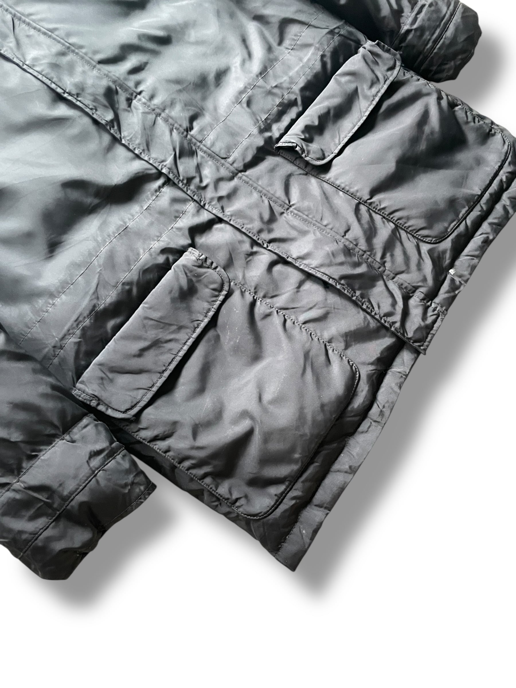 スタンドカラーかつチンスト仕様のリブニット襟や裏地フリースの取り外し可能なフードといった顔周りまでバッチリ防寒できるハイスペックな1着です