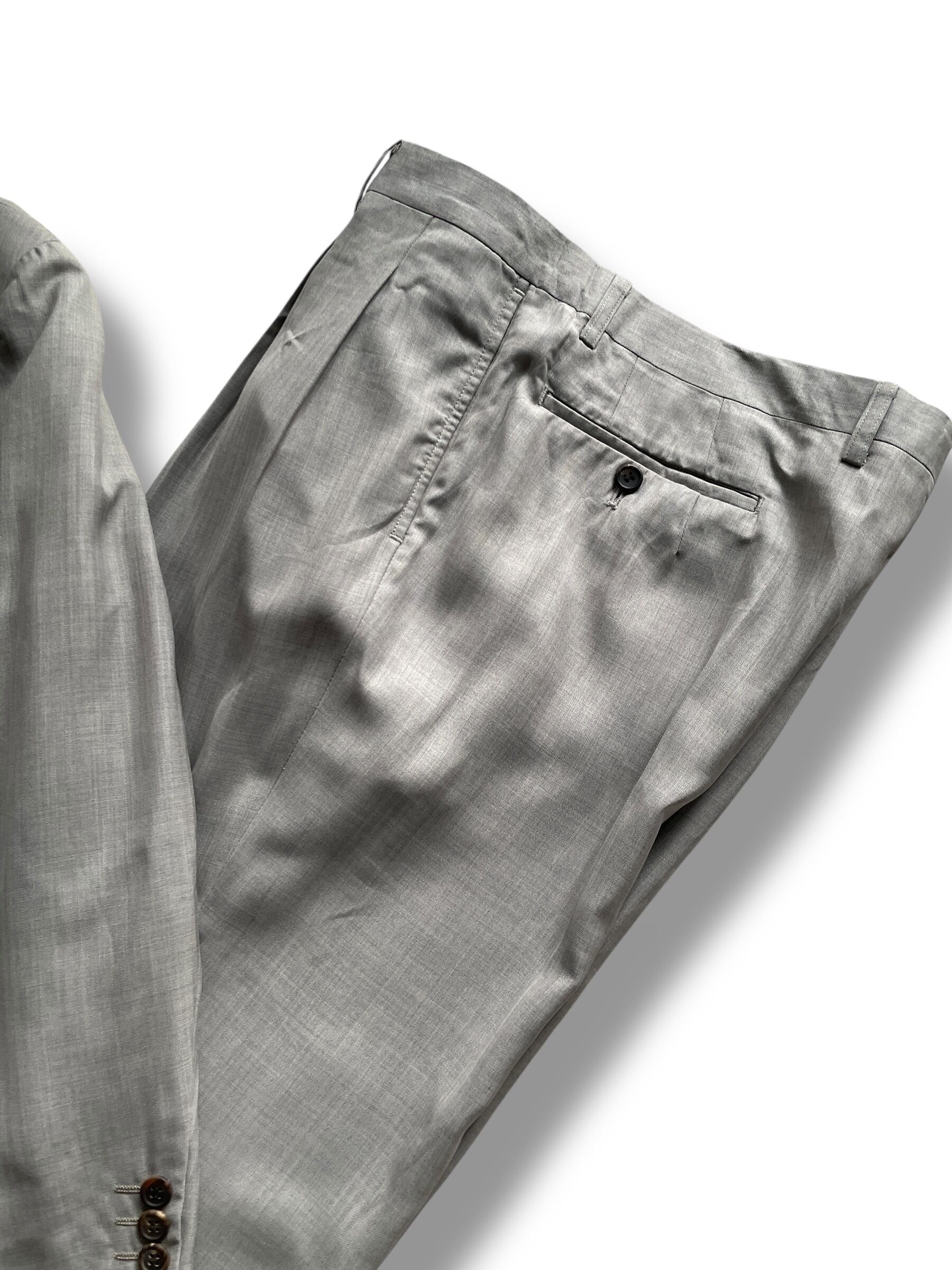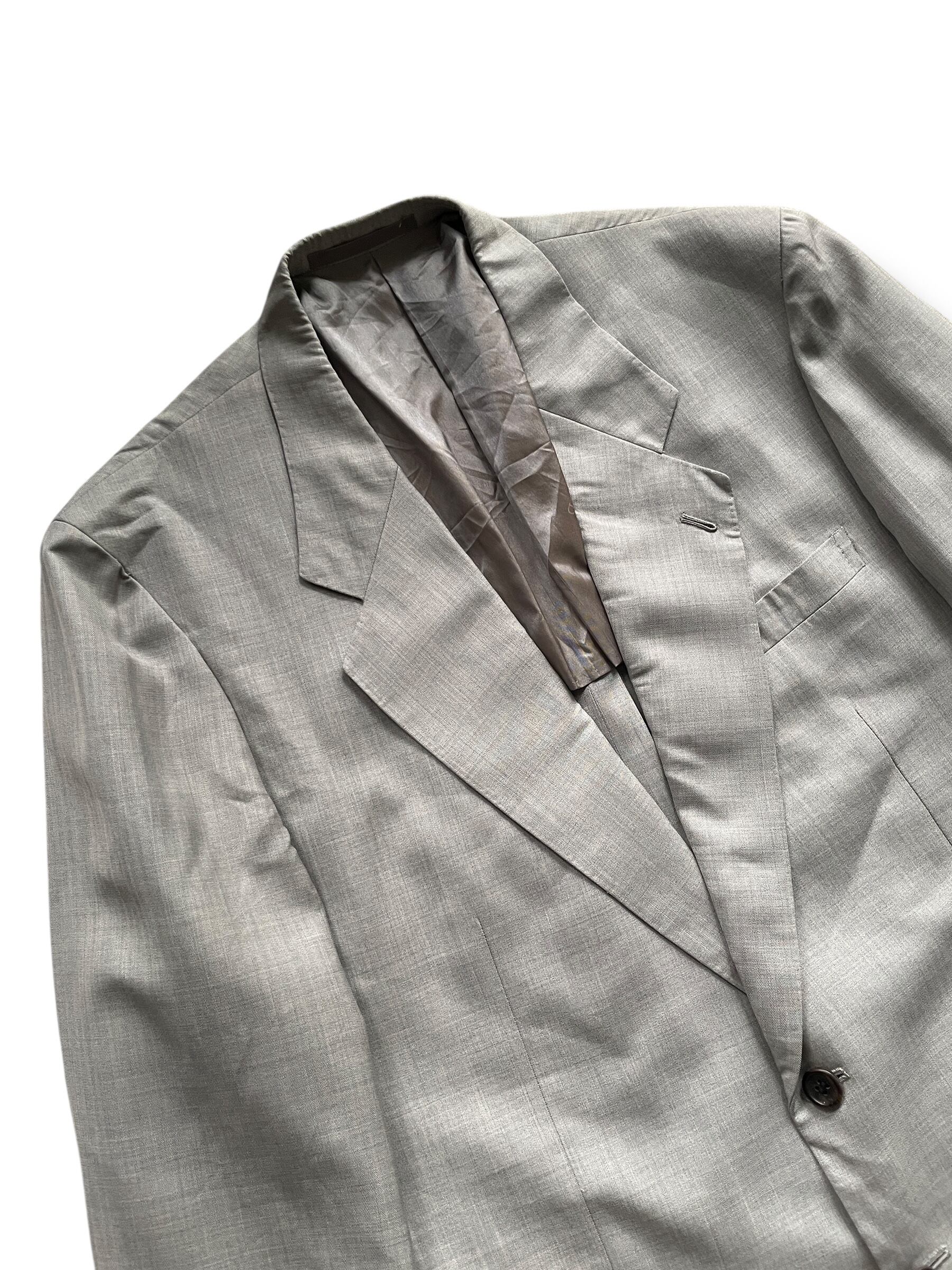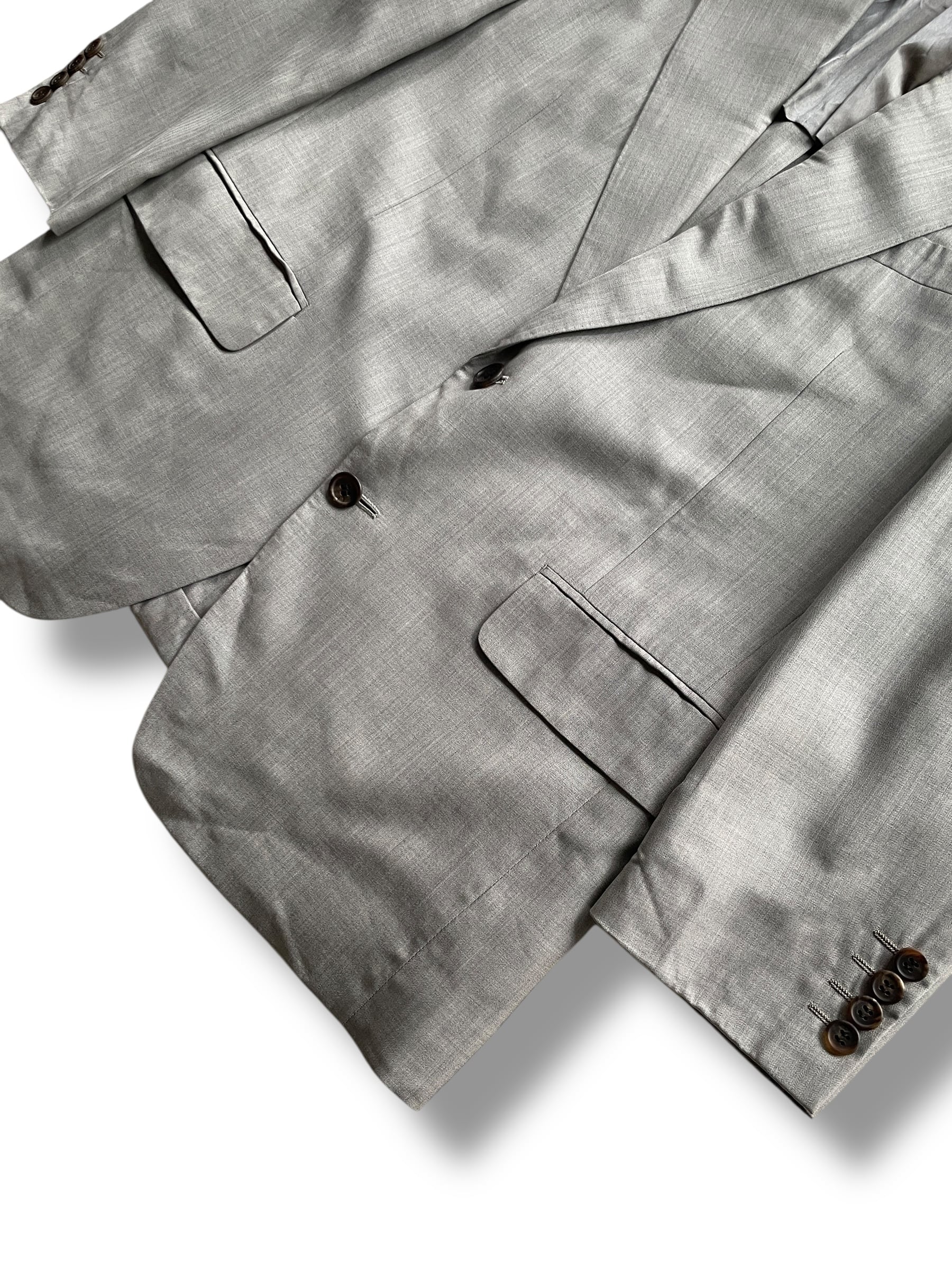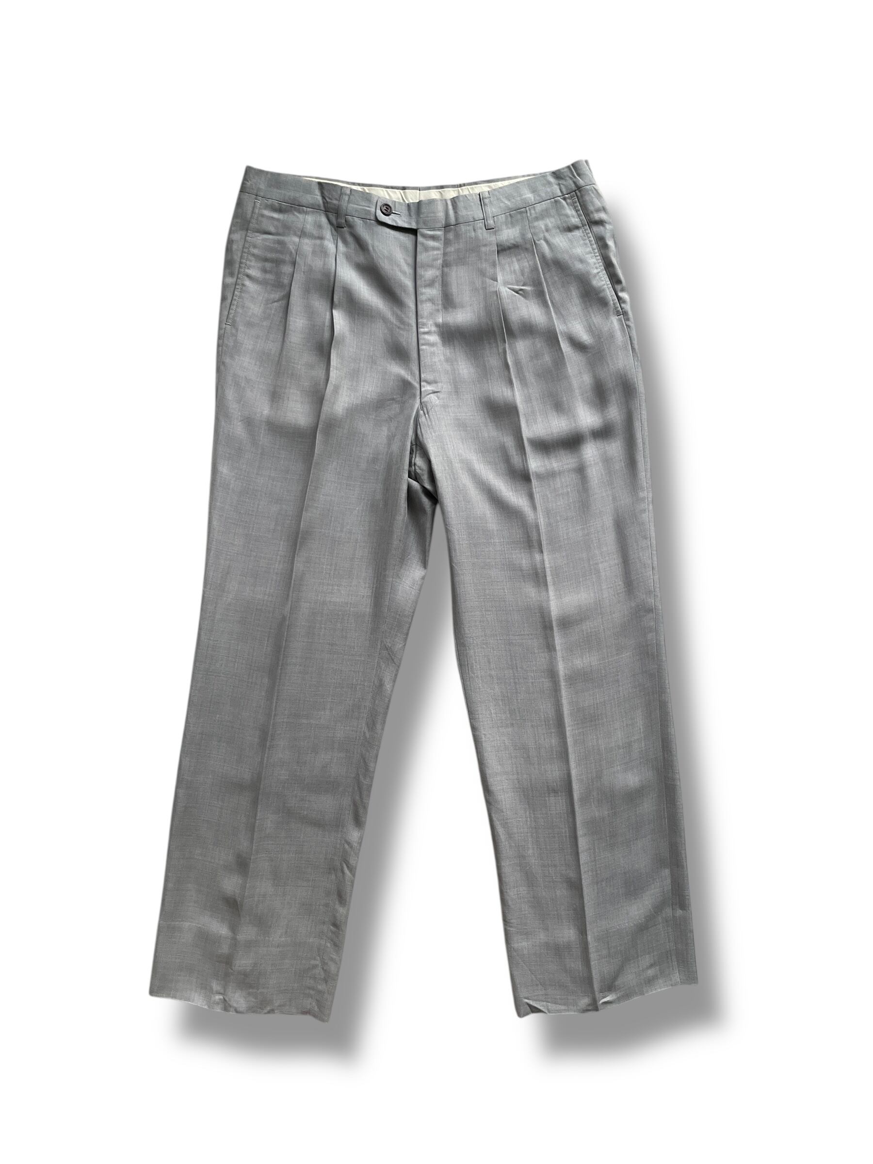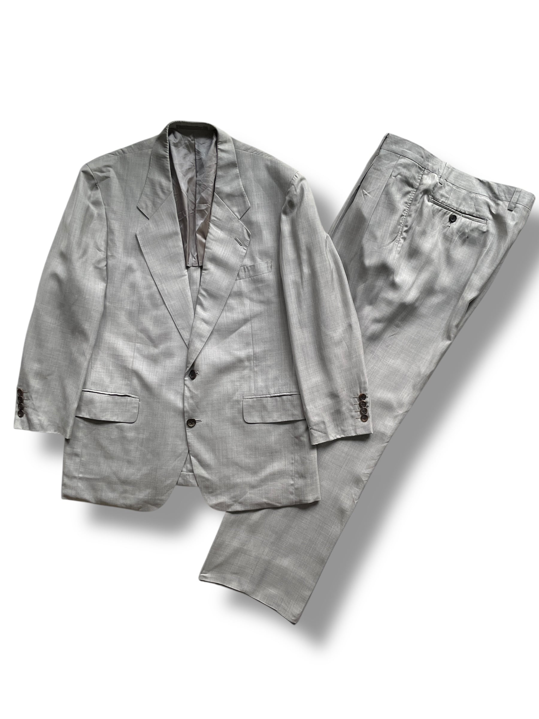クラシックな2ボタンジャケットとワンタック入りのスラックスの組み合わせは、フォーマルからドレスカジュアルまで幅広く対応可能。ヴィンテージならではの雰囲気を持ちつつ、シルエットは普遍的で長く愛用いただける一着です。
