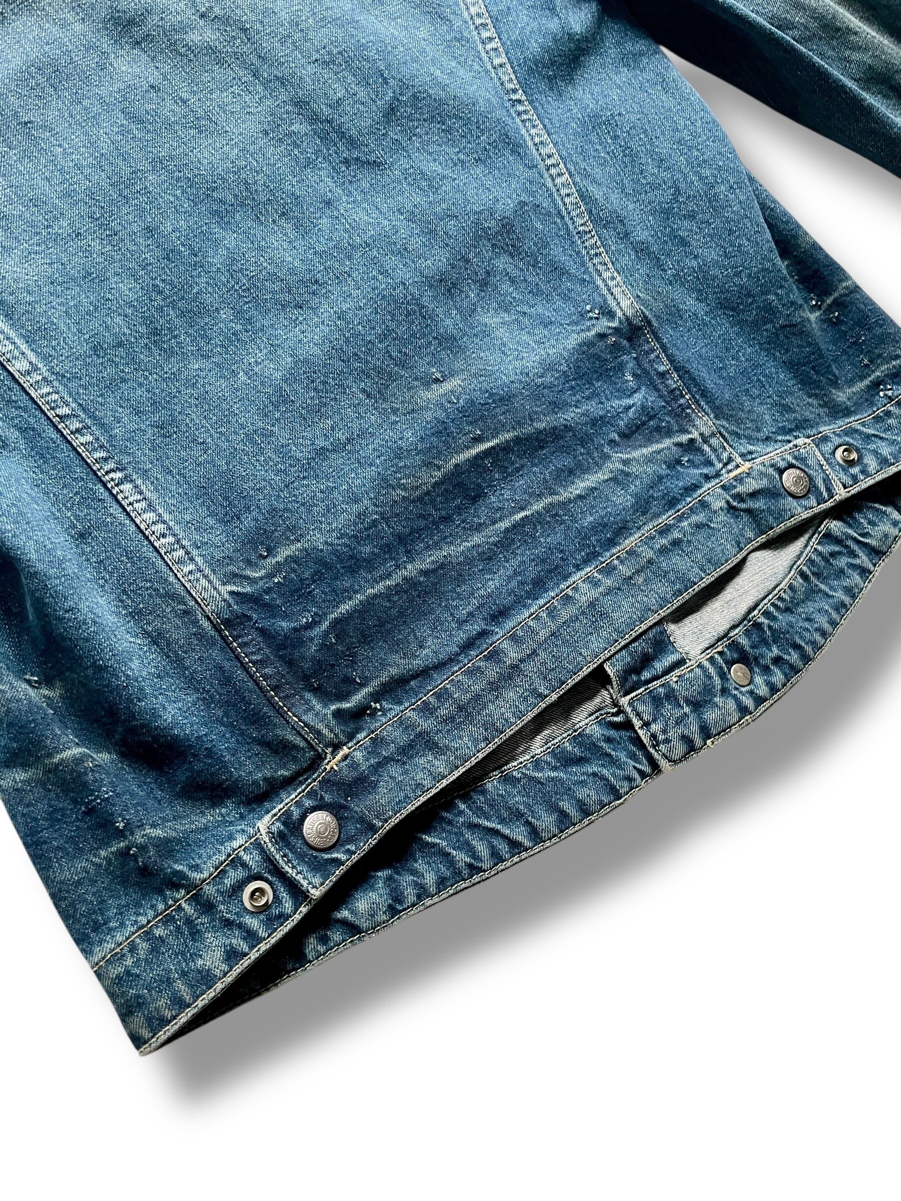 独自の立体裁断パターンを取り入れ、従来のデニムジャケットとは異なる独特のシルエットを実現しています。