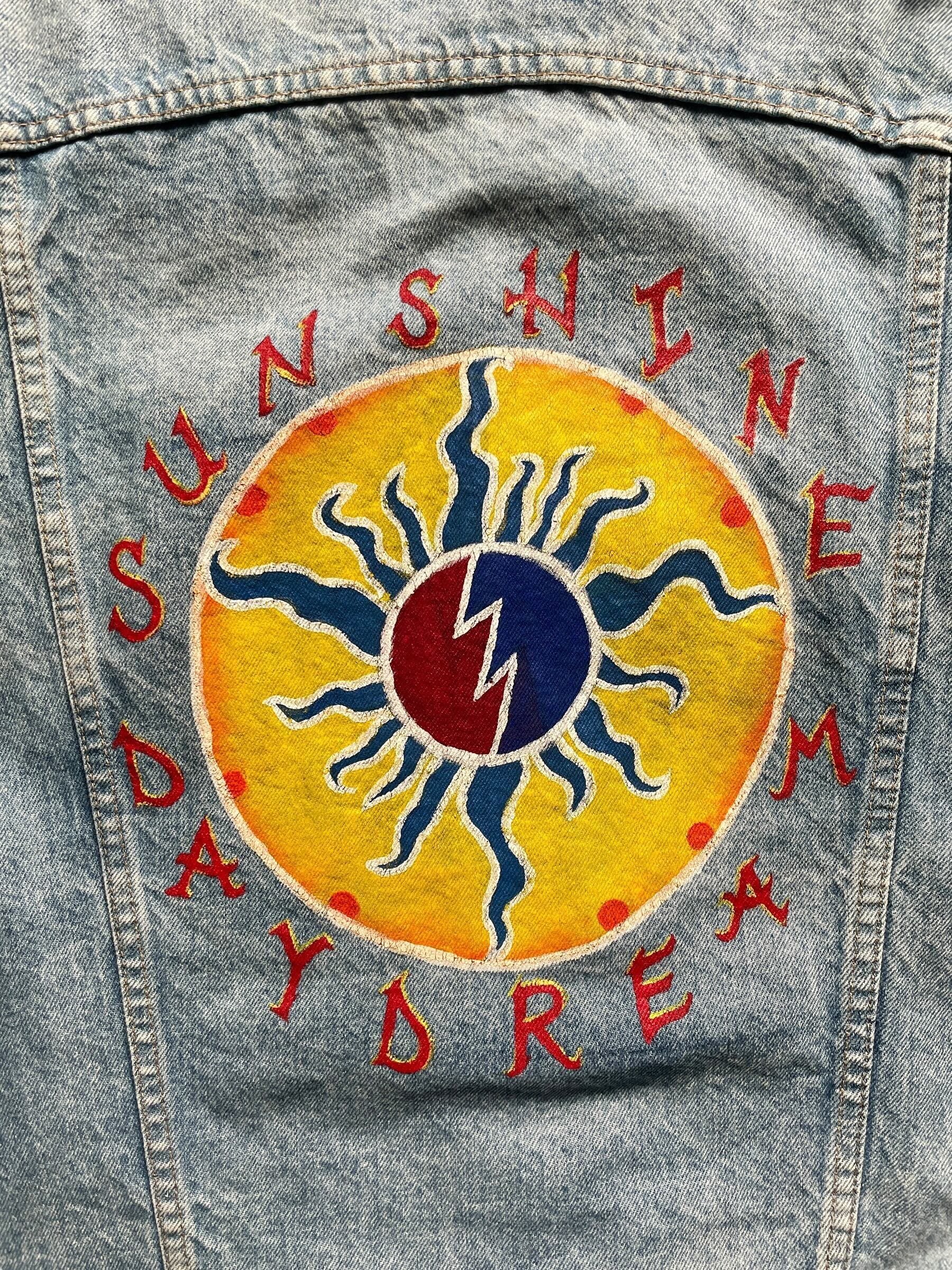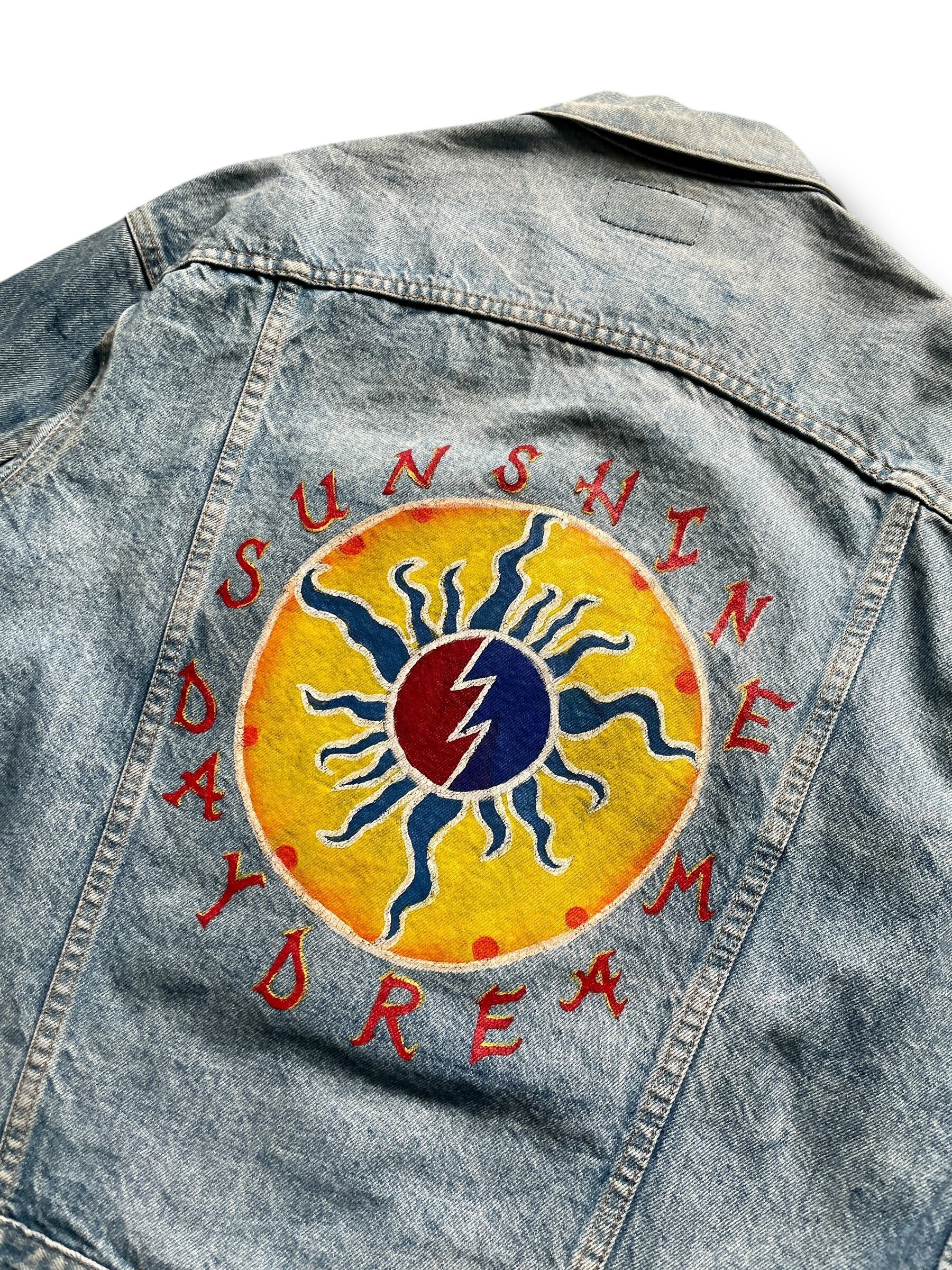90’s Levi’s 70507デニムジャケットをベースに、両袖に深紅のローズとツタを描き、背面にはGrateful Deadの名曲からインスパイアされた「SUNSHINE DAYDREAM」のサークルロゴを大胆にハンドペイント。