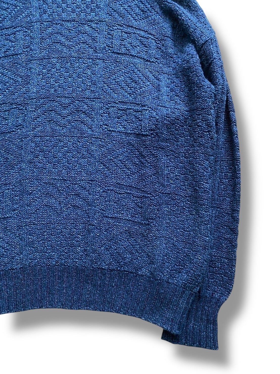深みのある杢ネイビーのお色でフロントにうっすら編みでのデザイン
