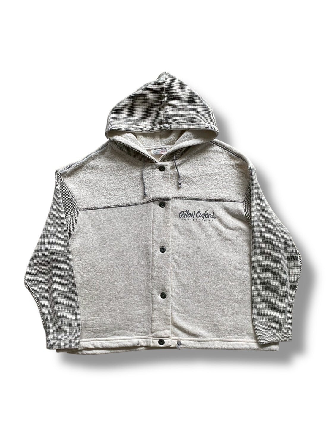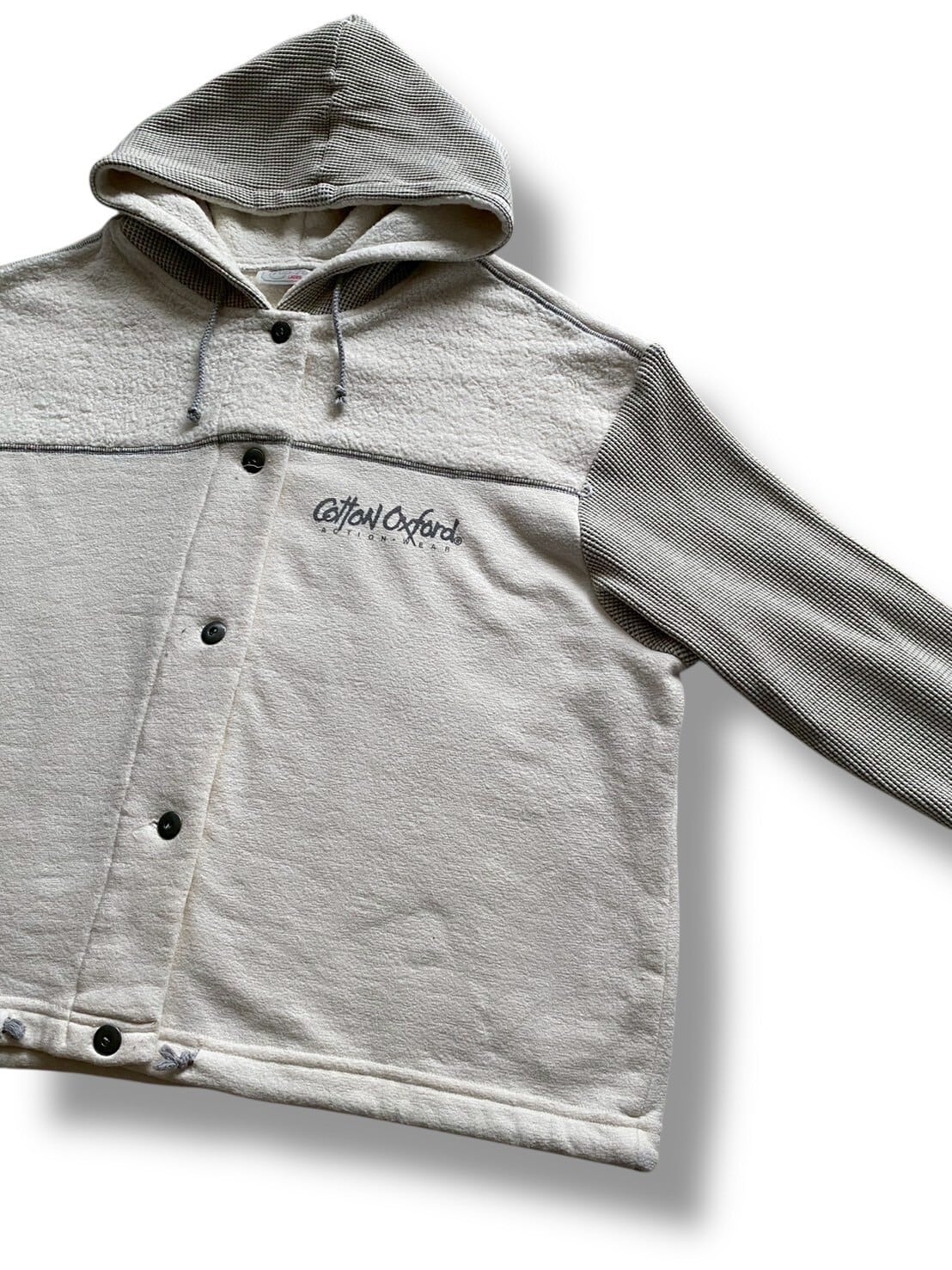 スウェットと起毛生地とサーマルの異色トリオな切り替えデザイン