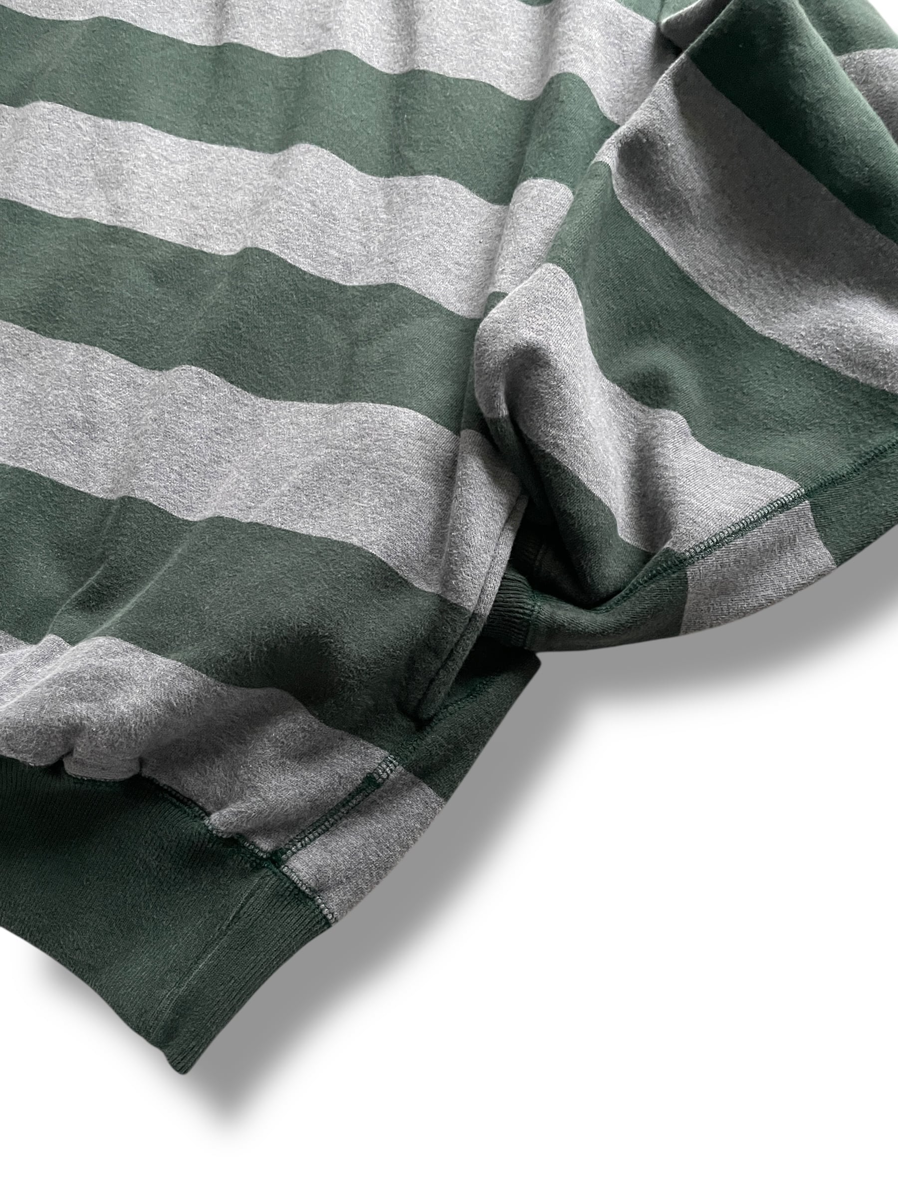 深みのあるフォレストグリーンとグレーのワイドボーダーが印象的な、
