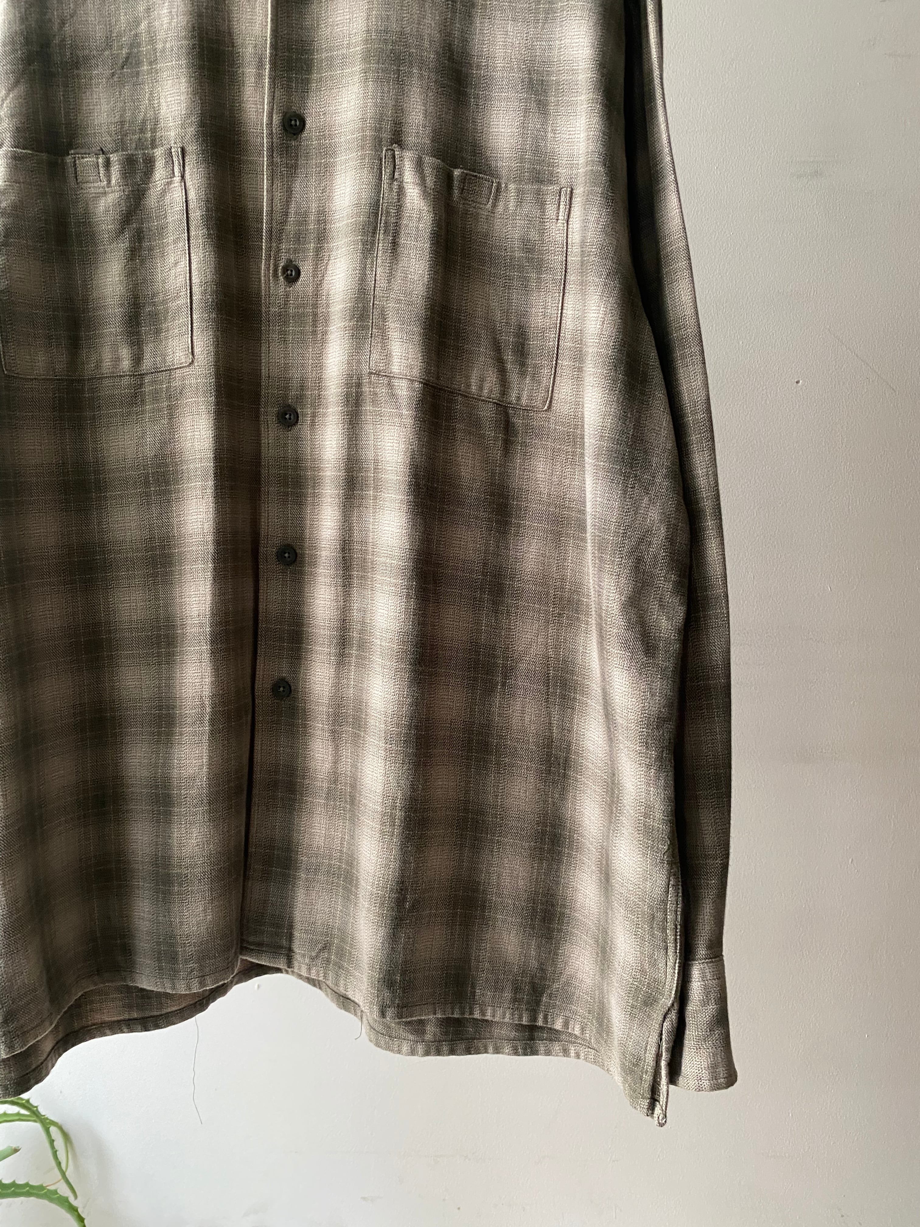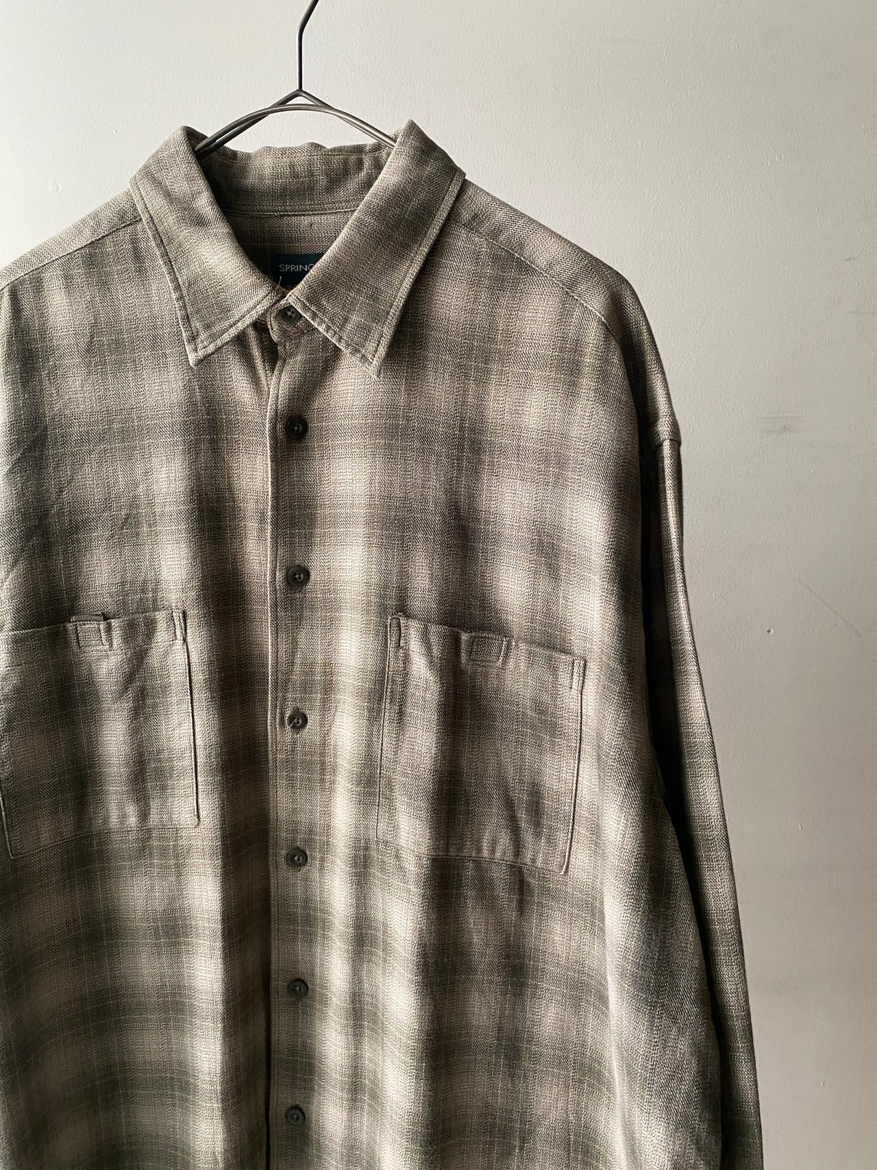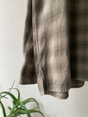 淡いカーキのような形容しがたい配色でのチェックがスタイリッシュな1着