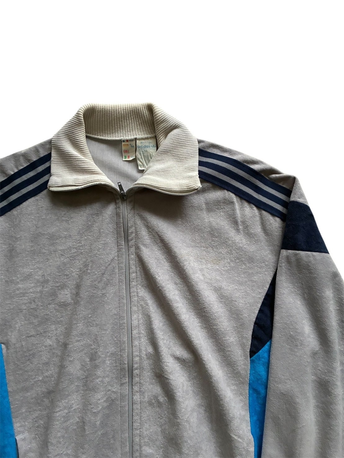 80’s adidas Velour Track Jacket “Made in France” / Gray × Blue