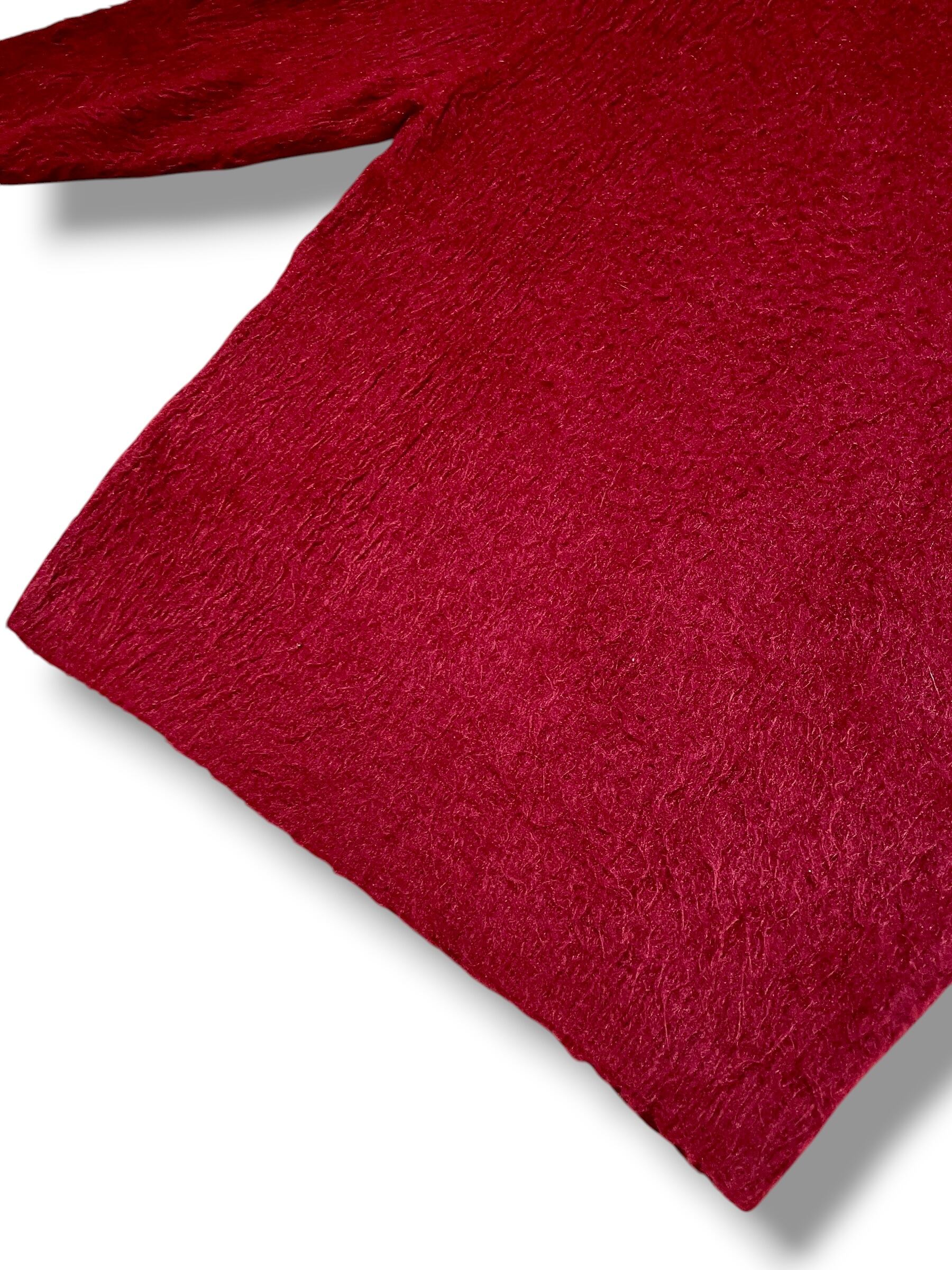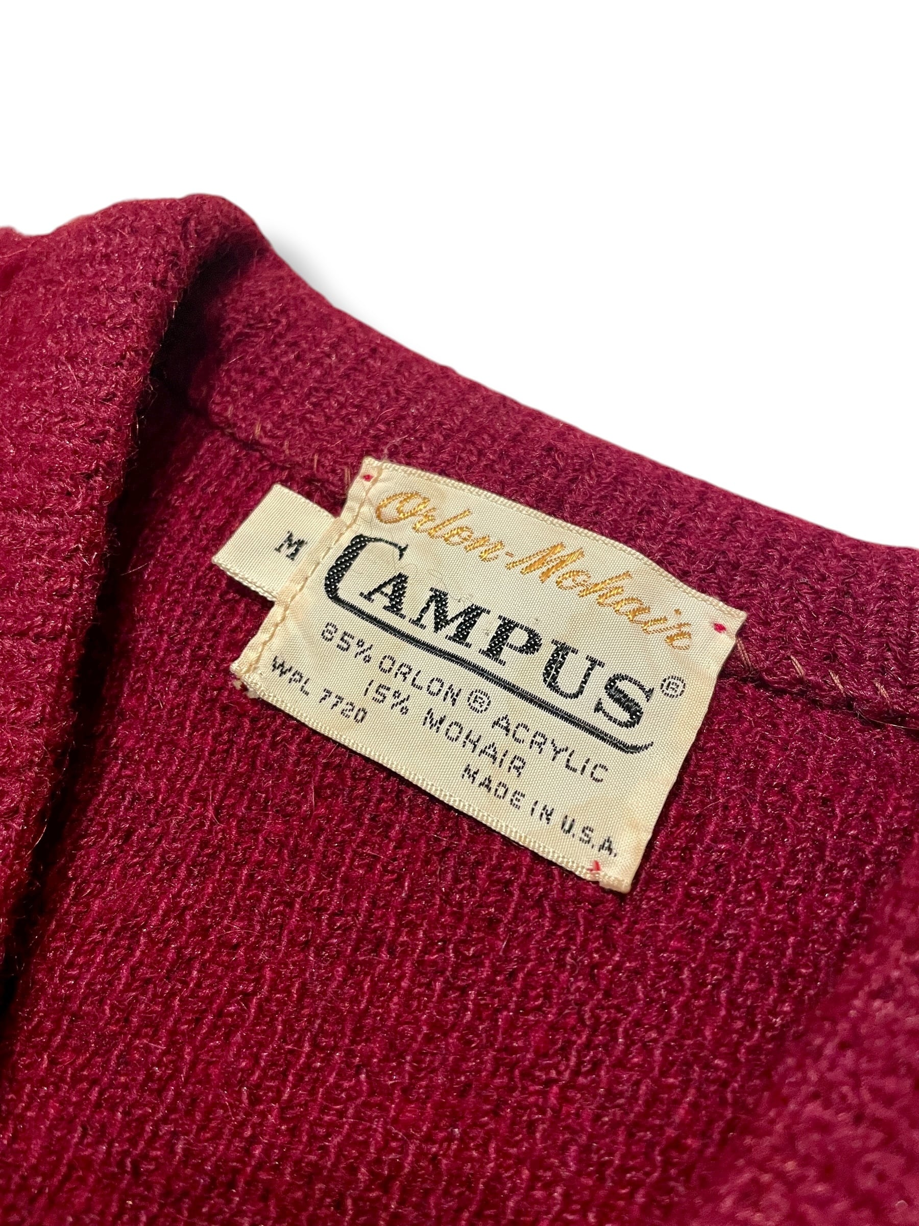 深いバーガンディが印象的な、60年代CAMPUSのVネックモヘアニット。