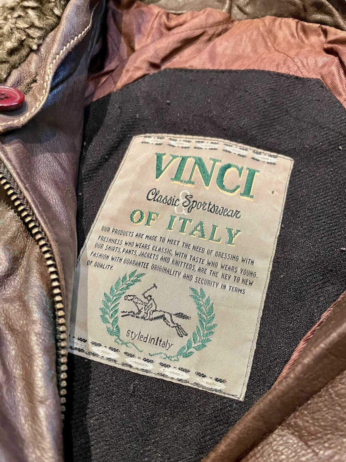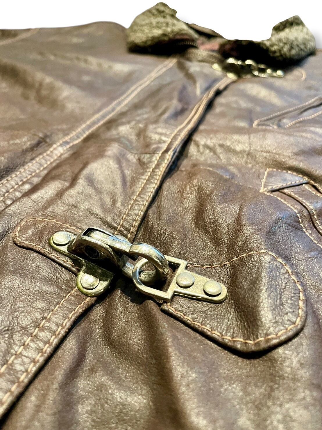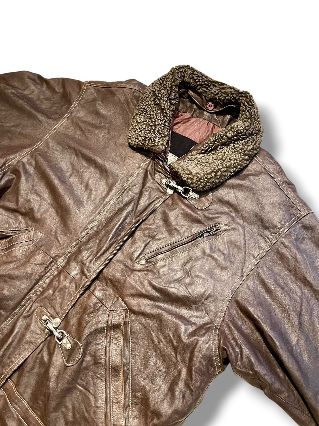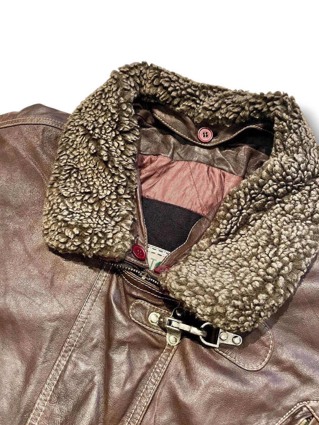 落ち着きのあるブラウンカラーのレザーに襟袖のボア切り替えで古着らしいハイセンスな作り