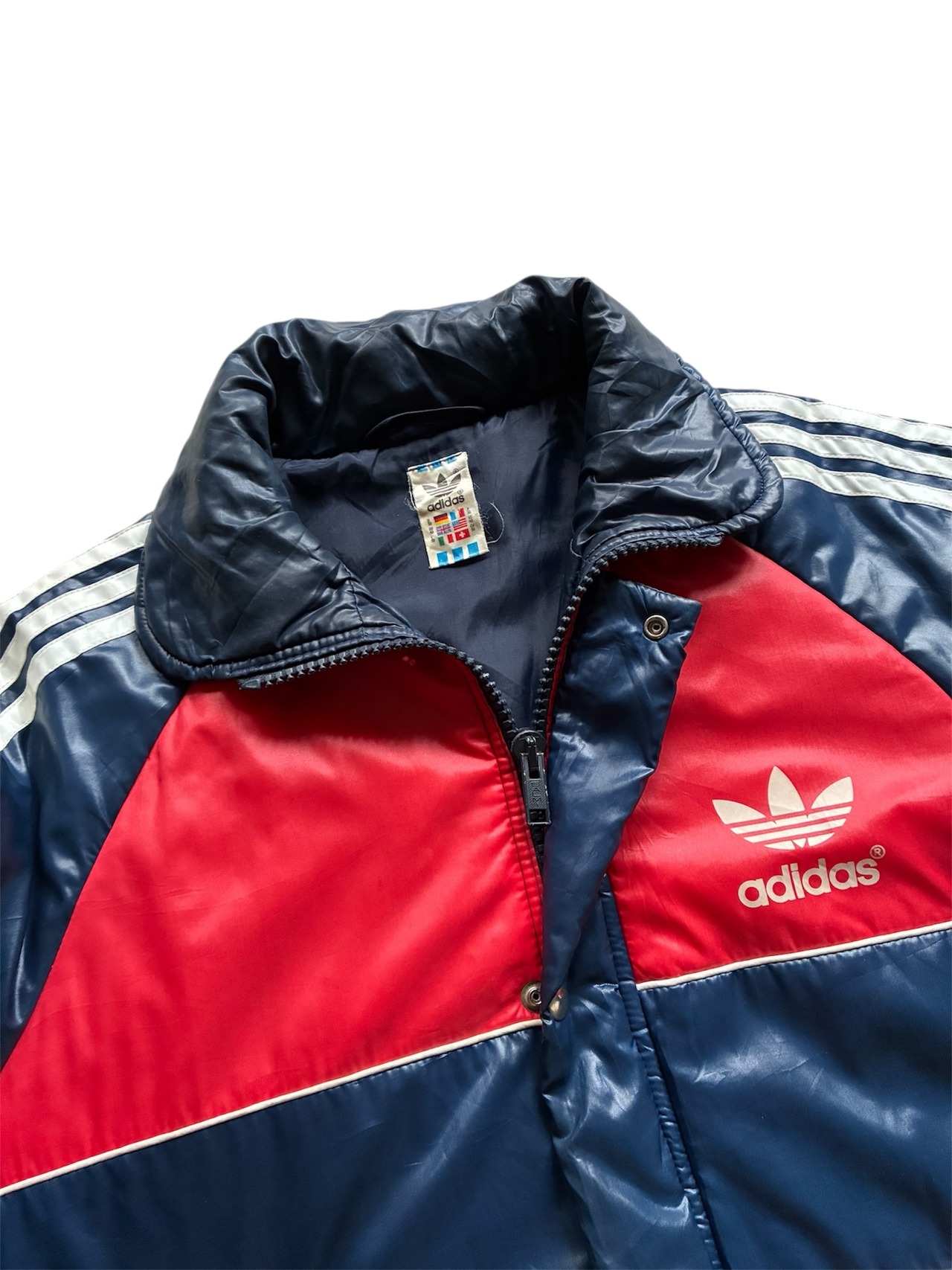 薄手かつライトオンスで中綿のしっかり詰まった気軽に暖かく着用できるオールドアディダスのナイロンジャケット