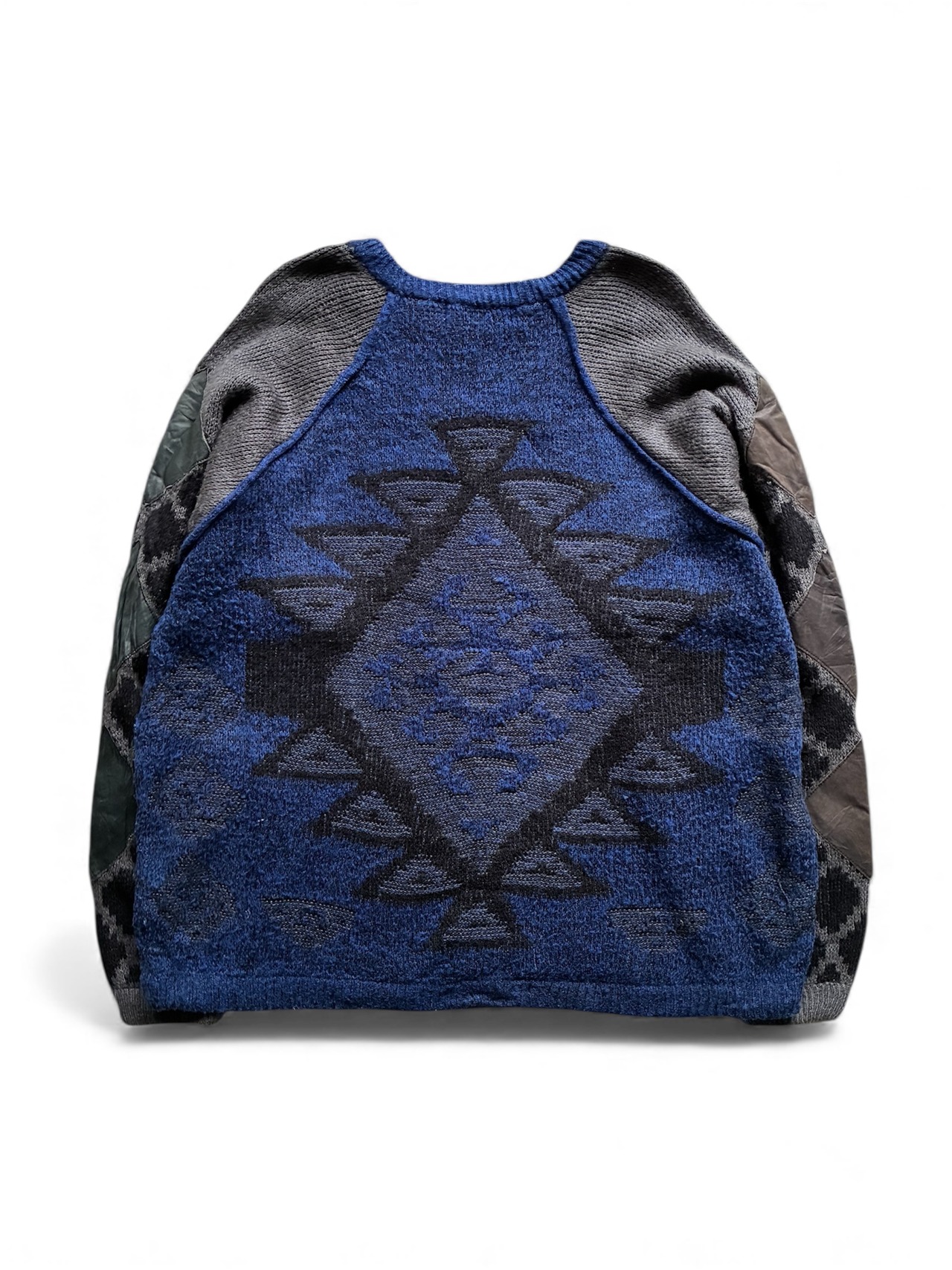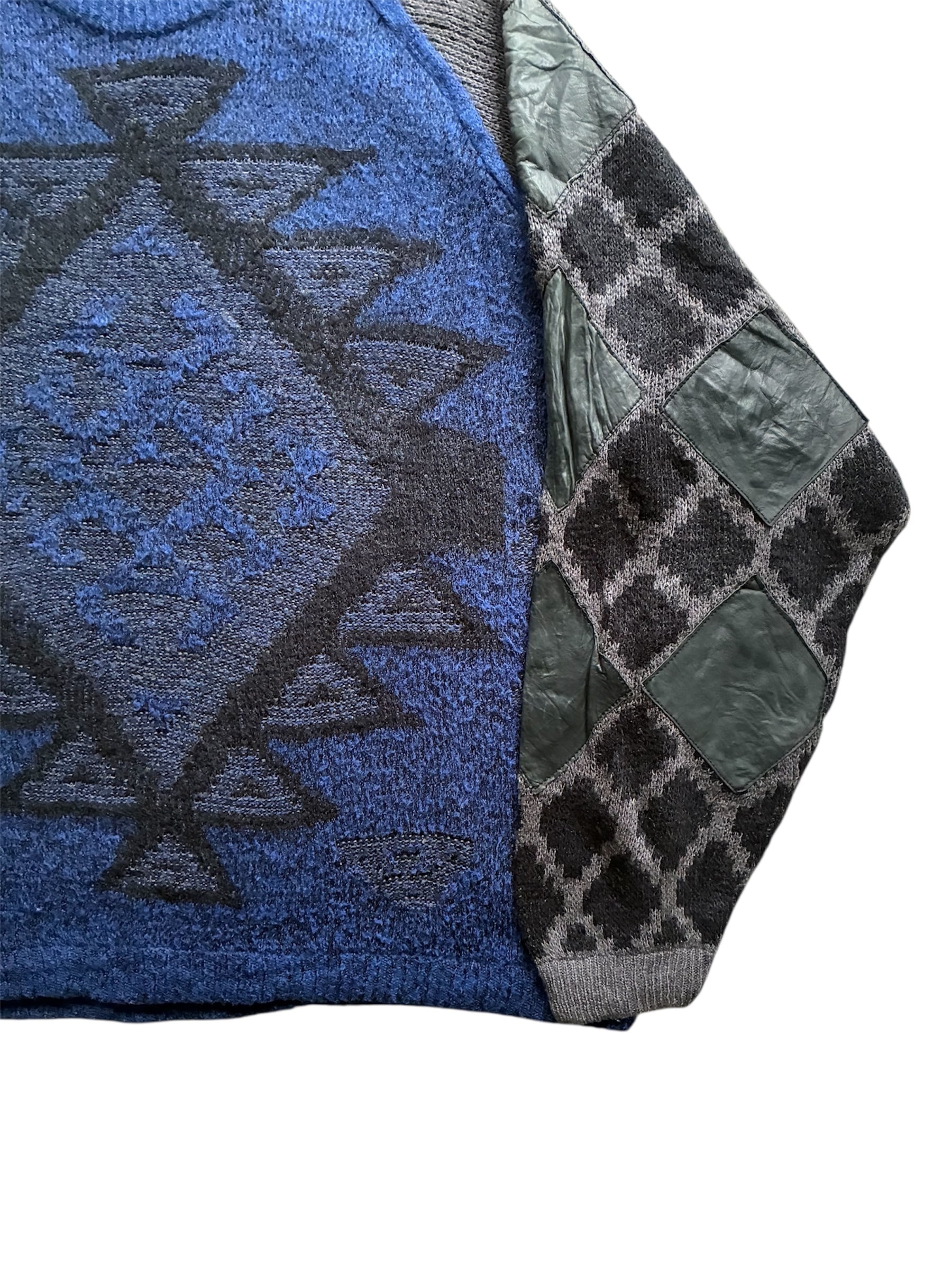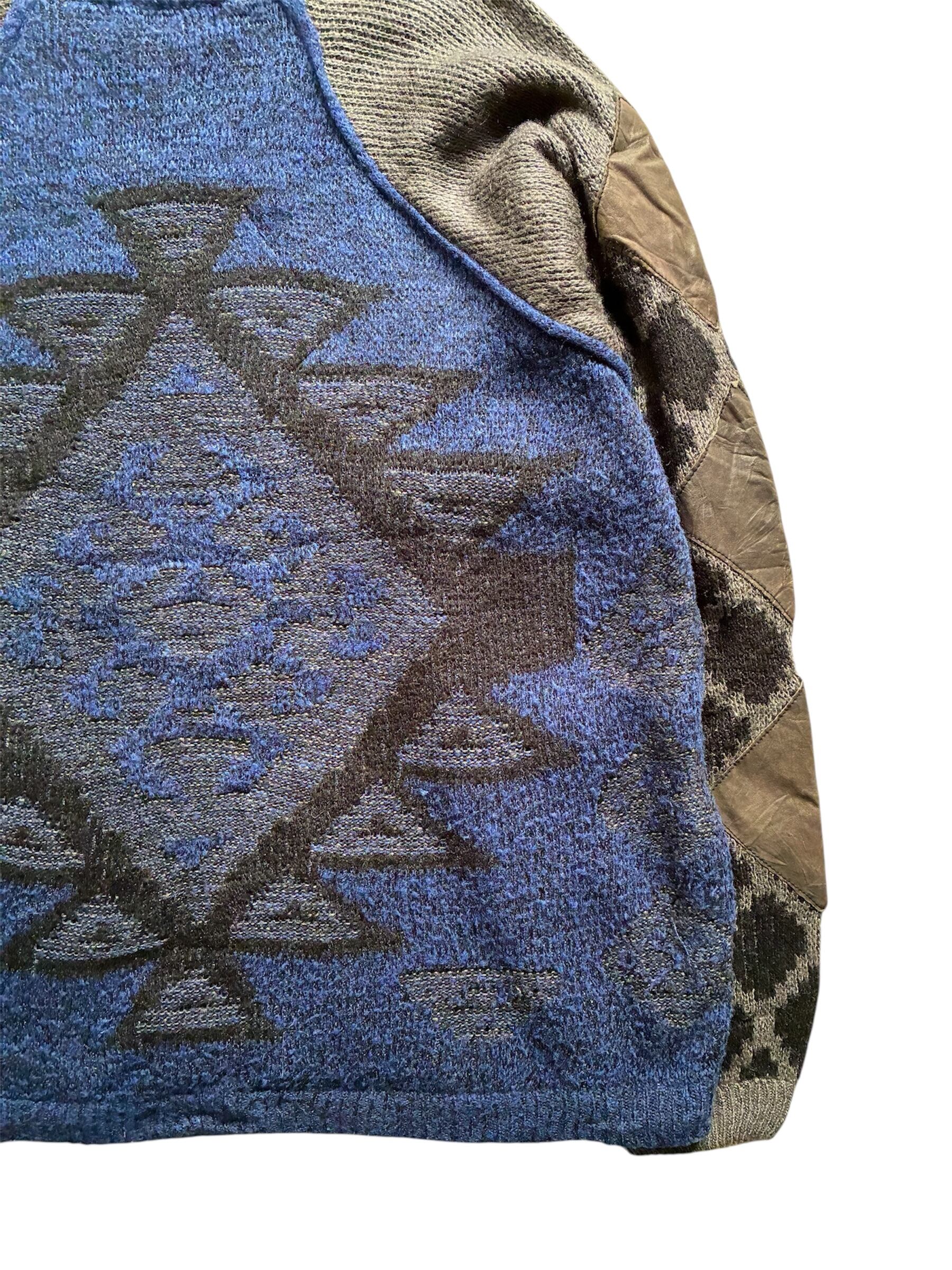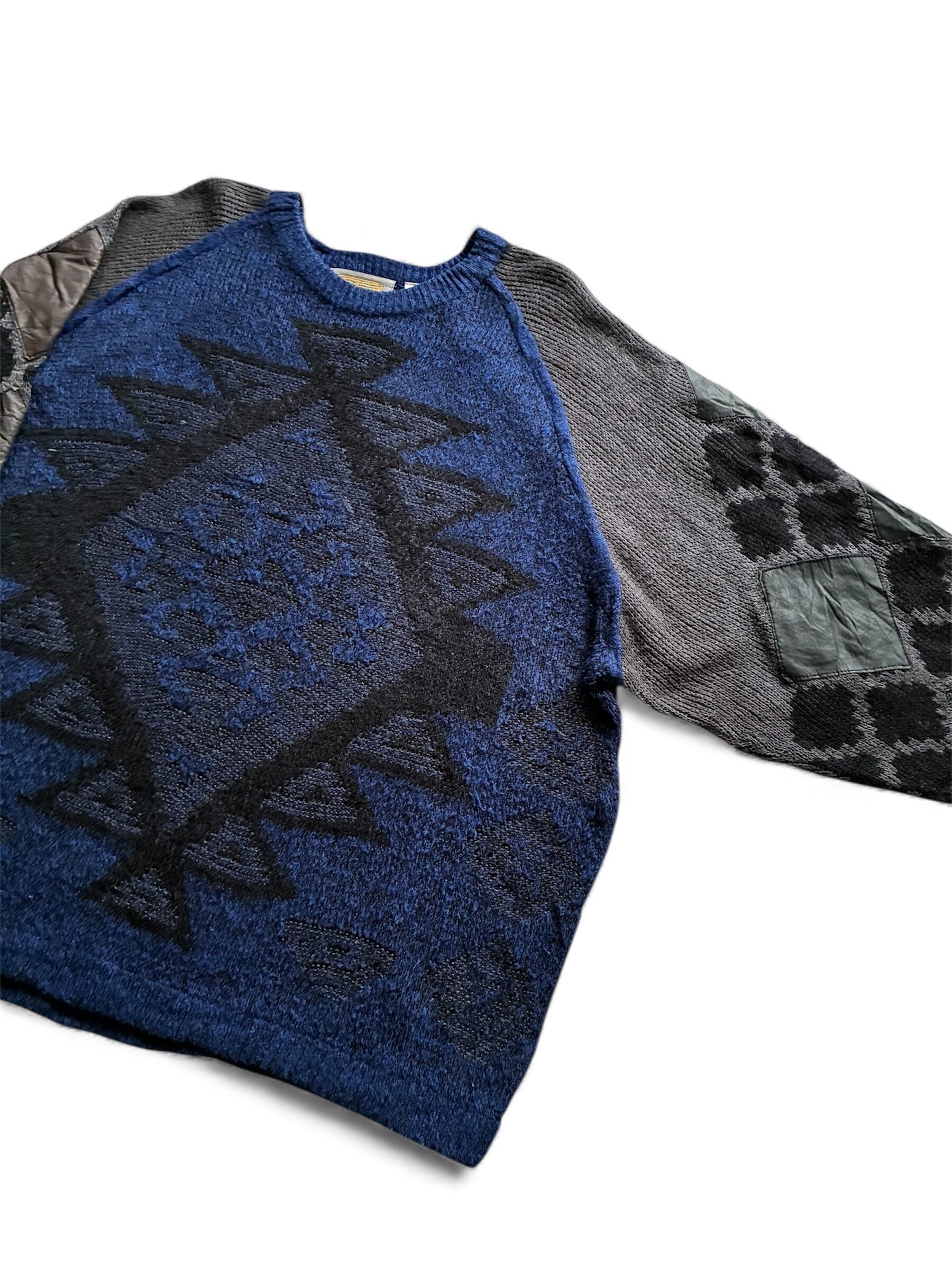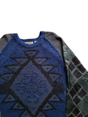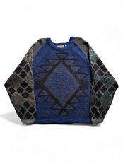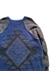 落ち着きのある配色にネイティブ調のデザインが映えるフェイクモヘアニット