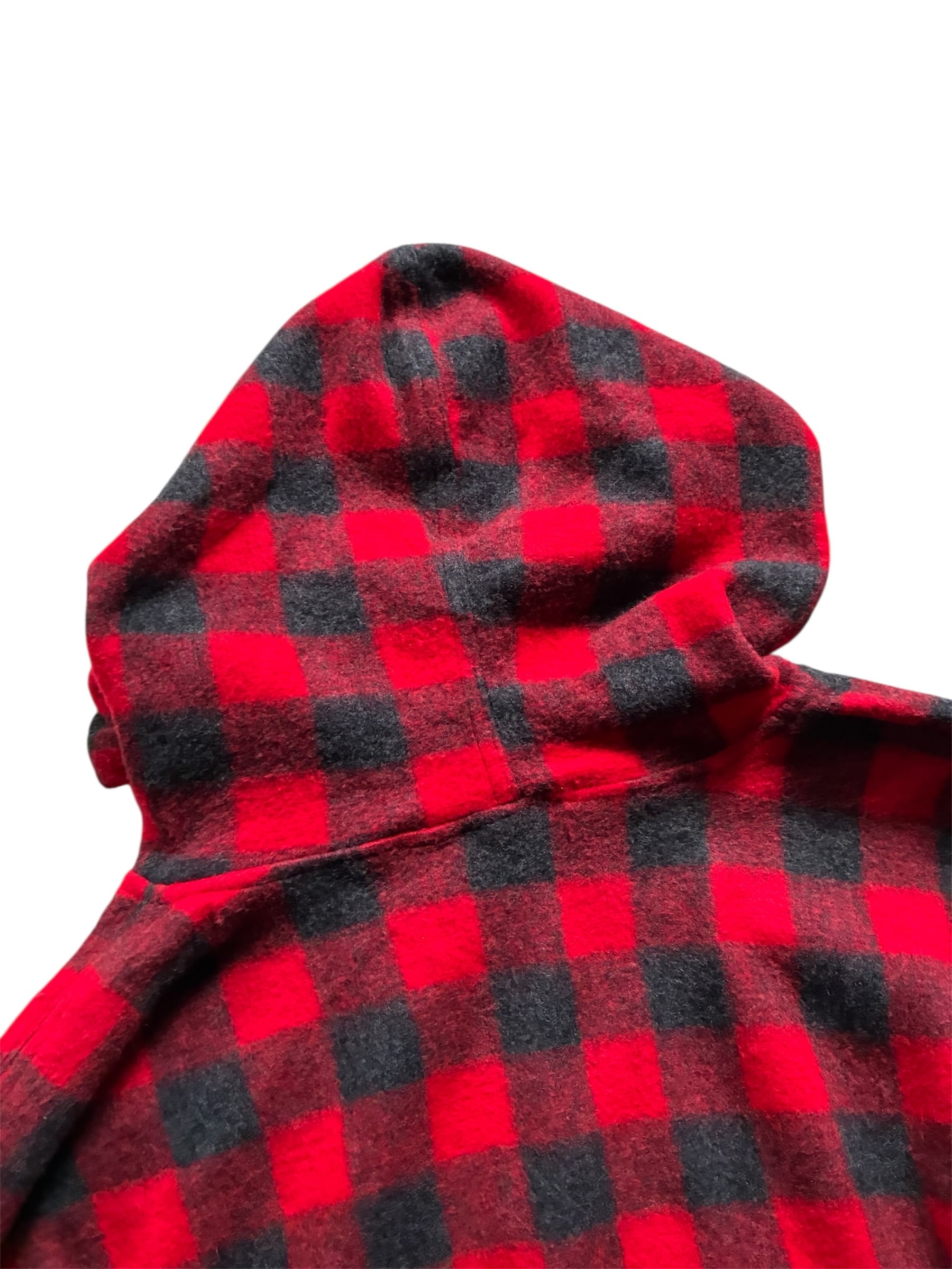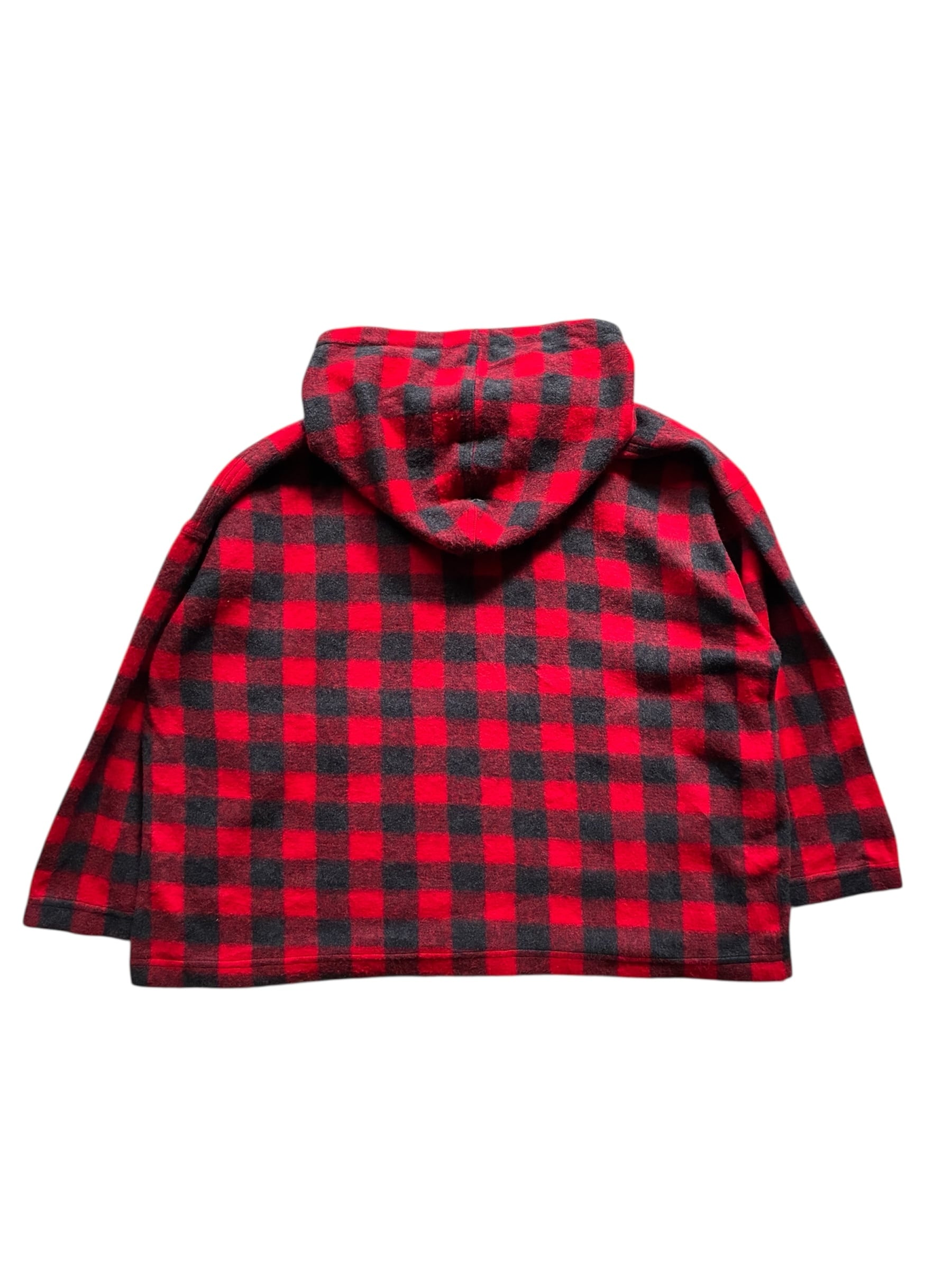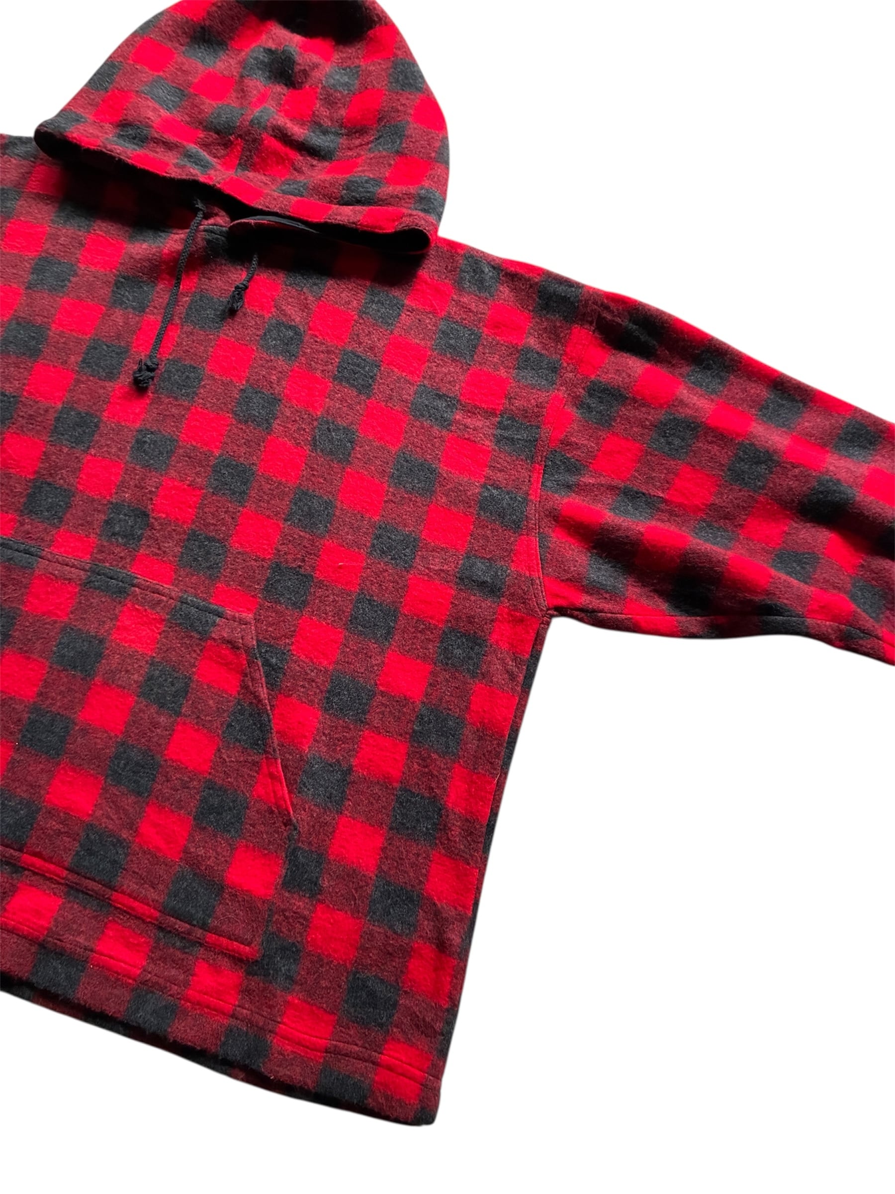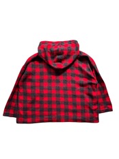 赤黒配色のブロックチェックが映えるスタイリッシュな起毛生地パーカー
