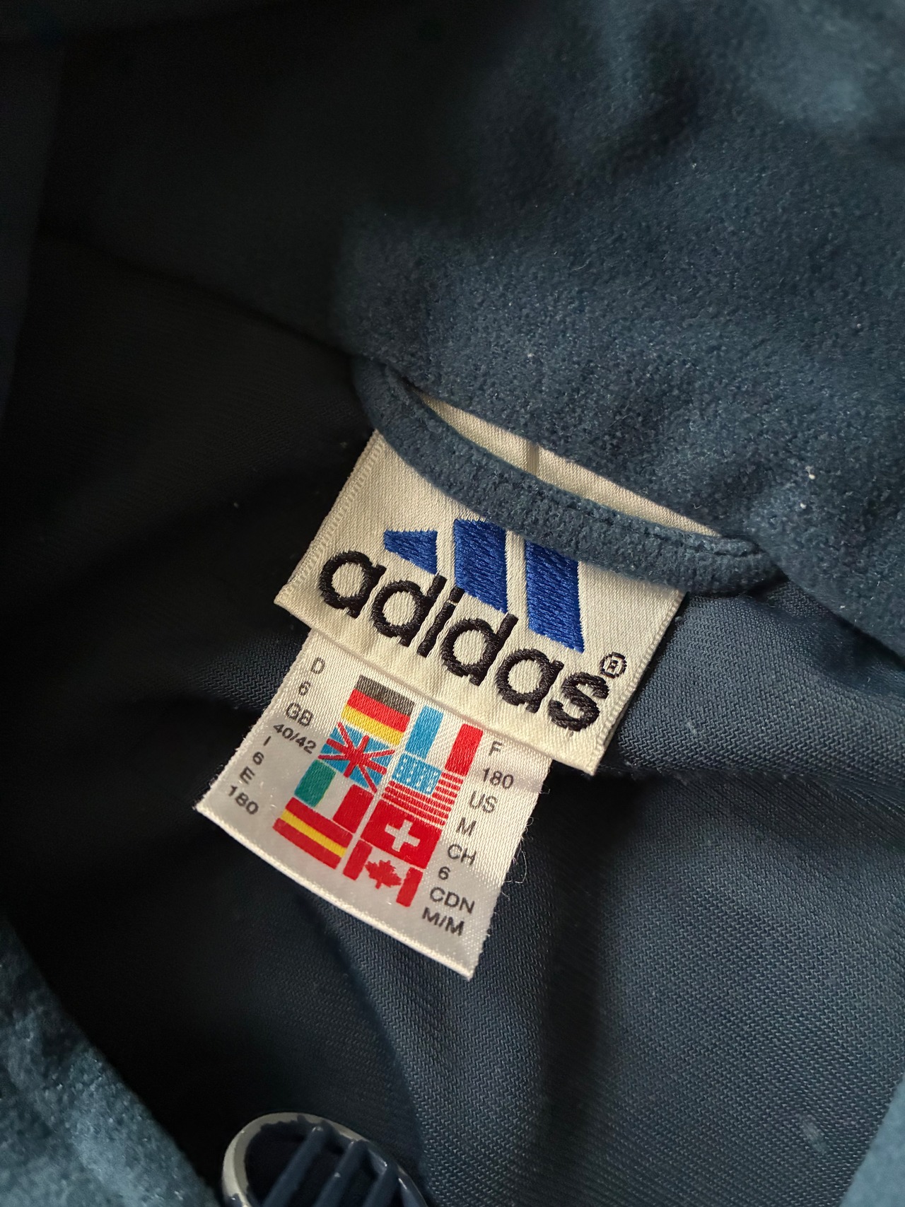 フリースとベロアの中間のようなソフトな手触りの生地感が秀逸な90年代製アディダスのトラックジャケット