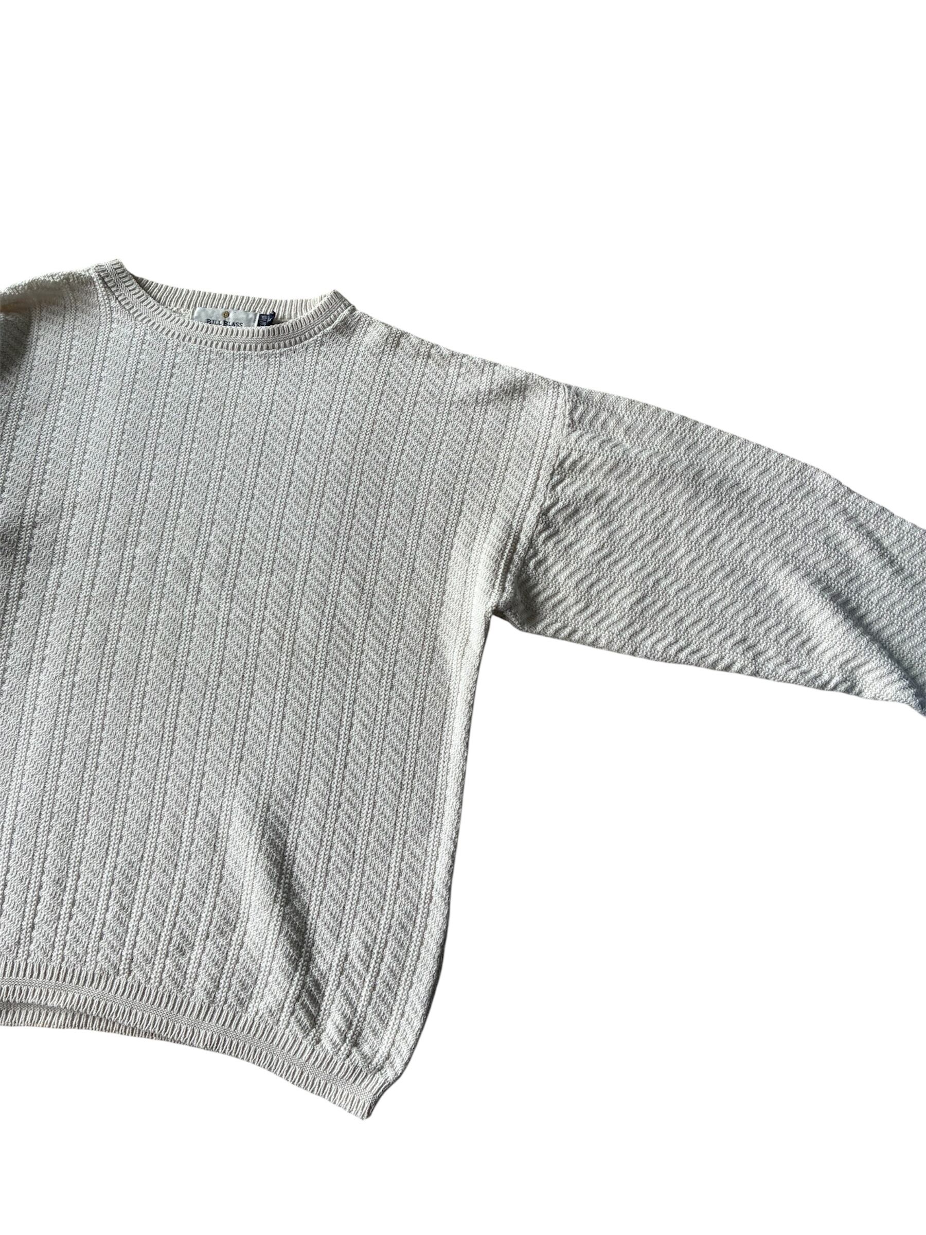 独特な編み地で構成されたベーシックに使えるコットンニット