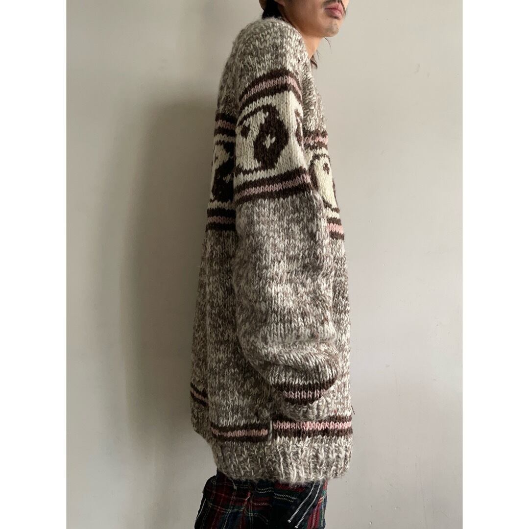 粗野な雰囲気の太めの糸でのローゲージの手編み