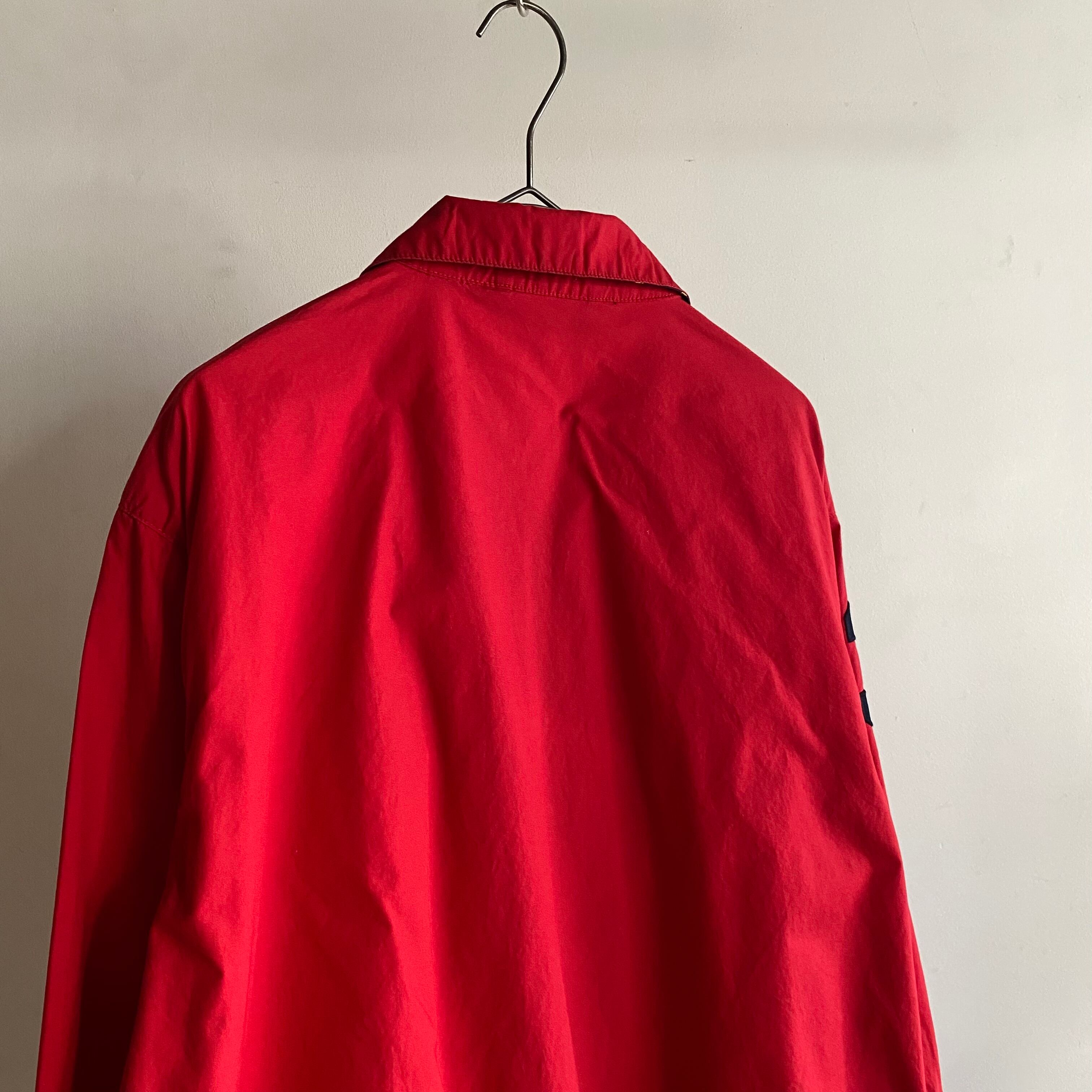 目を惹くビビッドなレッドカラーのボディに豪華な刺繍ロゴと袖のワッペン
